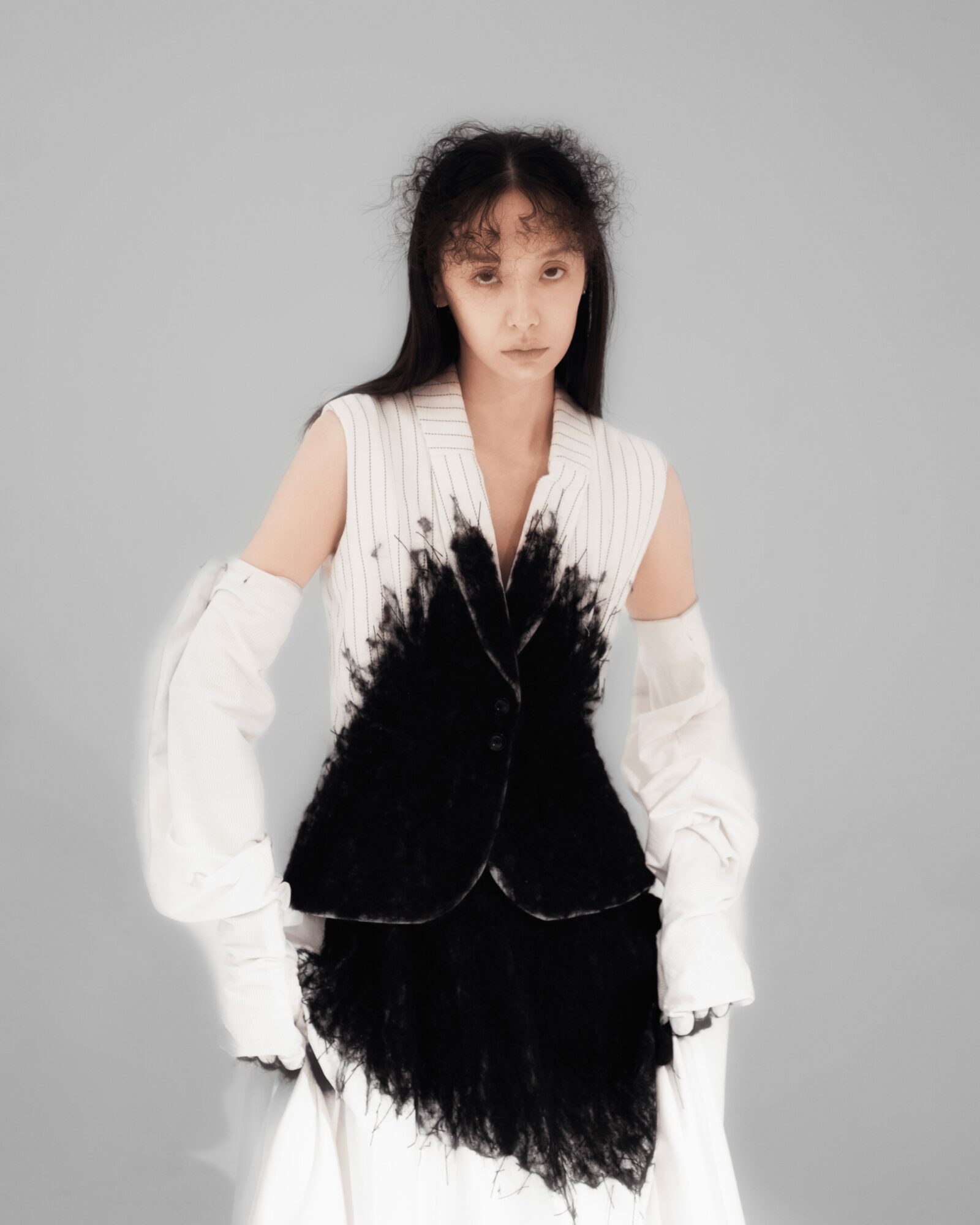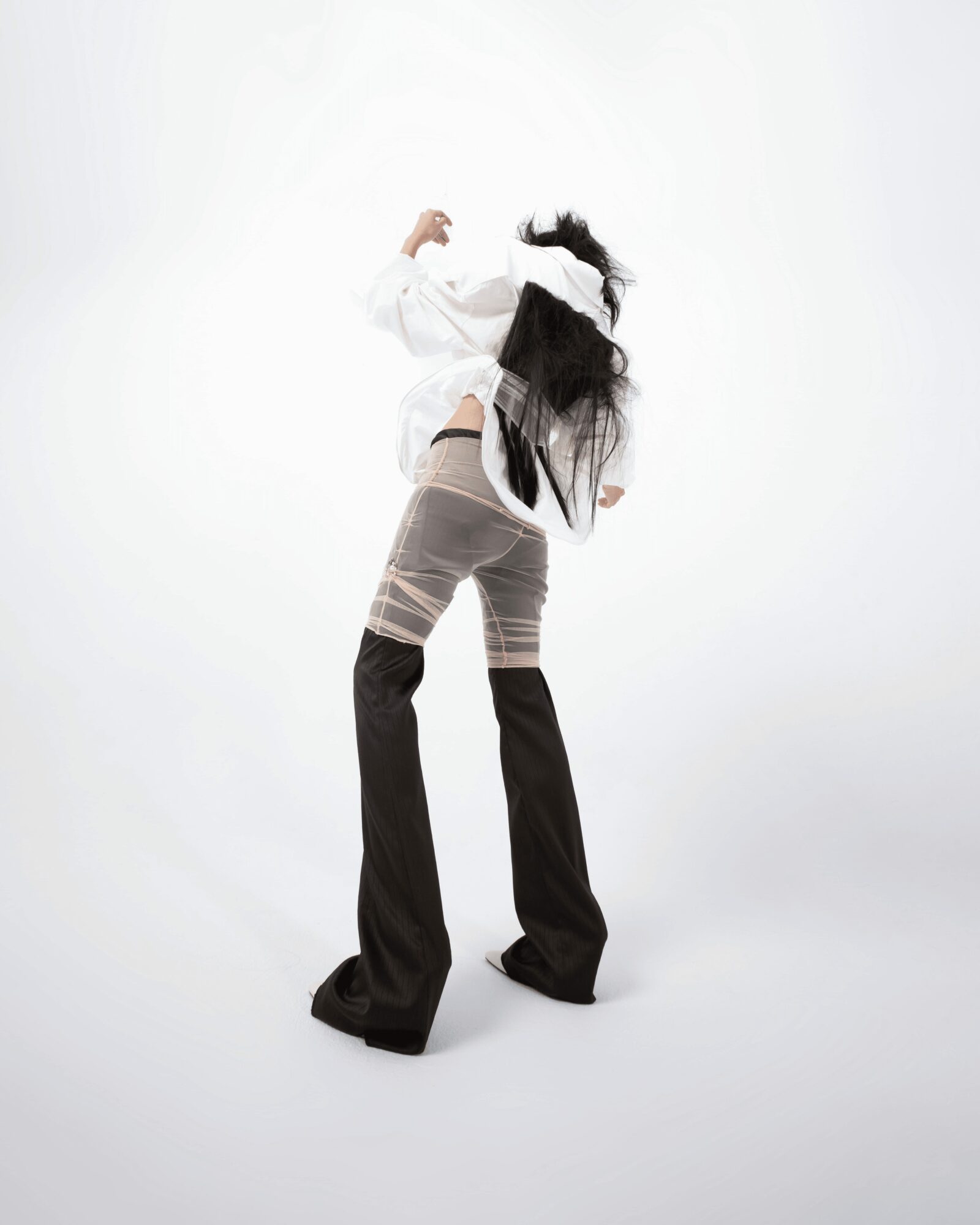 What distinguishes my work is the profound influence of my family background and philosophical studies. My designs are inspired by my curiosity about human contours, behavior, interactions, and emotions. Growing up in a traditional patriarchal family, with my grandfather playing a significant role in my upbringing, has instilled in me a unique perspective. The contrasts and contradictions in my family life, such as the different ways my grandfather treated me and my sister, and my father’s intermittent presence, are reflected in my work. For instance, I often incorporate masculine lines and silhouettes into women’s wear or create an androgynous feel in men’s wear. These elements manifest as unconscious byproducts of my design process, adding depth and authenticity to my creations.