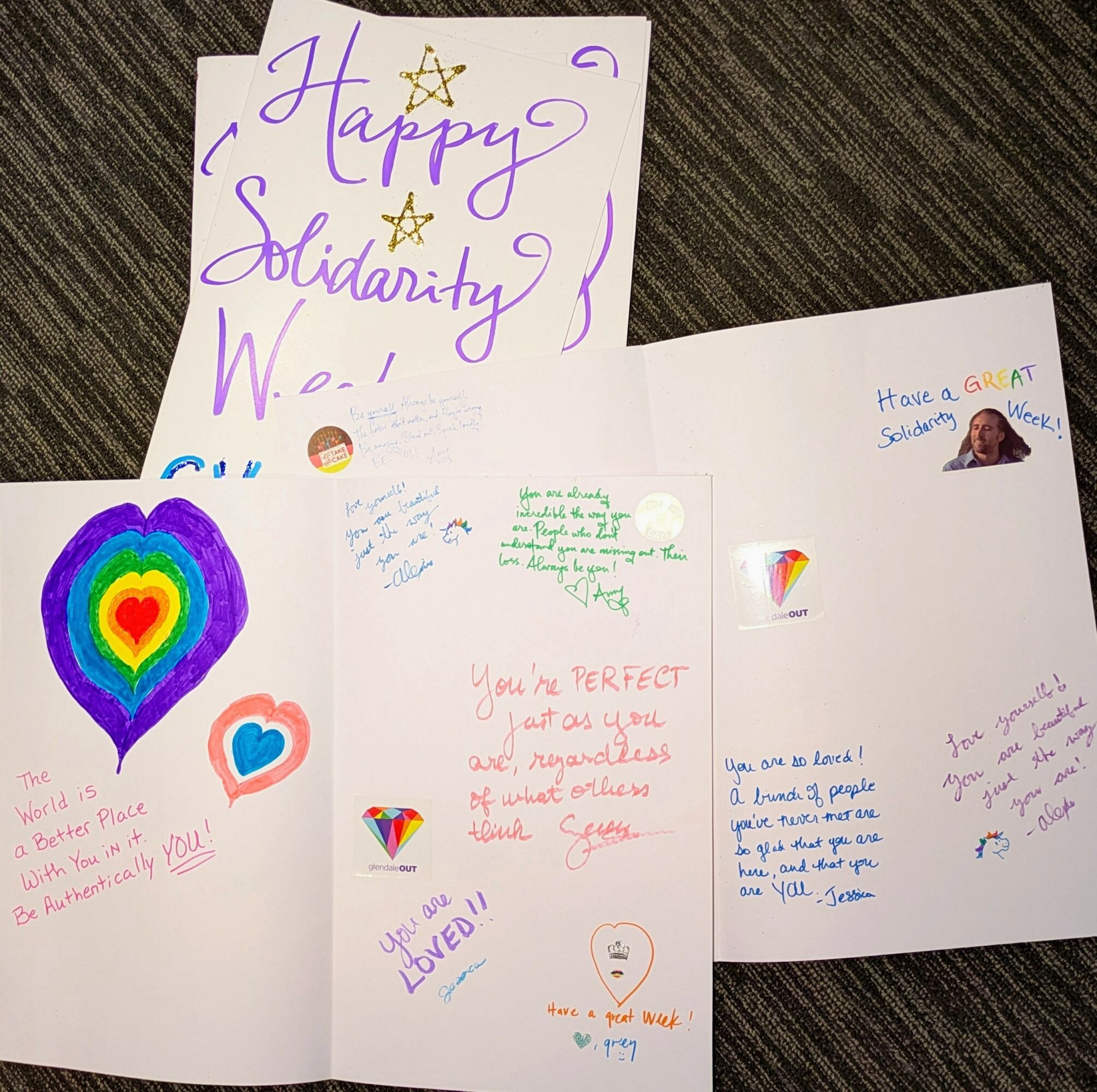 For our PROJECTS we’ve been fortunate enough to forge relationships with community partners to offer our queer youth safe spaces and experiences. Some past PROJECTS included Junior High Los Angeles, LA Derby Dolls and Free Mom Hugs. Together we’ve collected clothes and created safe space for kids to try on whatever they wanted. We’ve continues our art roots. Sometimes we just buy pizzas for GSA lunch meetings. Our most recent PROJECT was with @taylorpaschalcosmo, who volunteered her day off to give affirming haircuts to our community. You wouldn’t think this is a big deal, but it is – to be a woman who can’t walk into a salon for basic needs? Absolutely. The GSA’s are just wrapping up their annual Solidarity Week. This year 5 schools participated. Their chalk-bombing was WAY better than the cards we made for them, and we had a ringer for the glittering!
