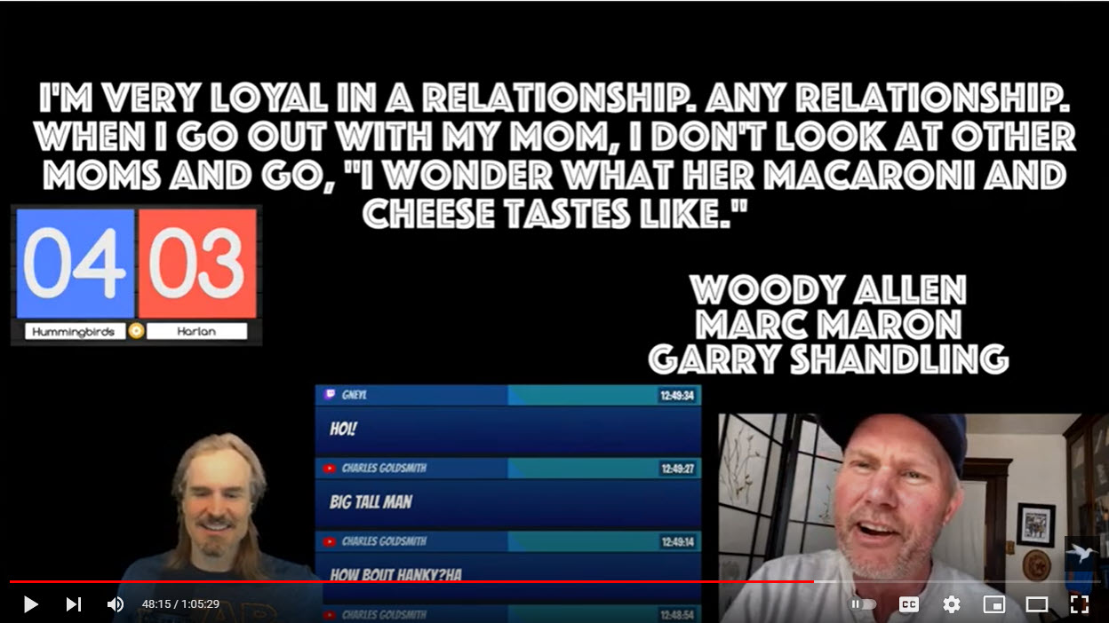 I am first and foremost an actor. I’m still really working on fully realizing this as a profession, but acting is what I enjoy doing the most. It’s constantly challenging, wildly varied, and engaging. Stand-up comedy is a close companion to this. Although it is a different art form and often requires different skills, there is a lot of cross-over and one feeds the other. The big thing that stand-up does is gets my mind working as a writer. Stand-up requires you do be constantly writing and observing. The other skill that I’ve acquired is Livestreaming. I run my show Joel Marshall’s Lunch Therapy almost like a DJ. Although I’ve never DJ’d, I think they are very similar in that you are performing while also running a technical show, like you are producing a show and performing in it at the same time. Although I often upload pre-produced videos to YouTube, I prefer the live show because it motivates me to be creative, because there is a specific time that the show must go on. And what happens in the show can always surprise me. I think that ups the level of engagement for me and for the audience. I am also a huge fan of the audience interaction aspect. Often the funniest things are said by the audience. And, there is the give and take that happens, similar to crowd work in a comedy club.