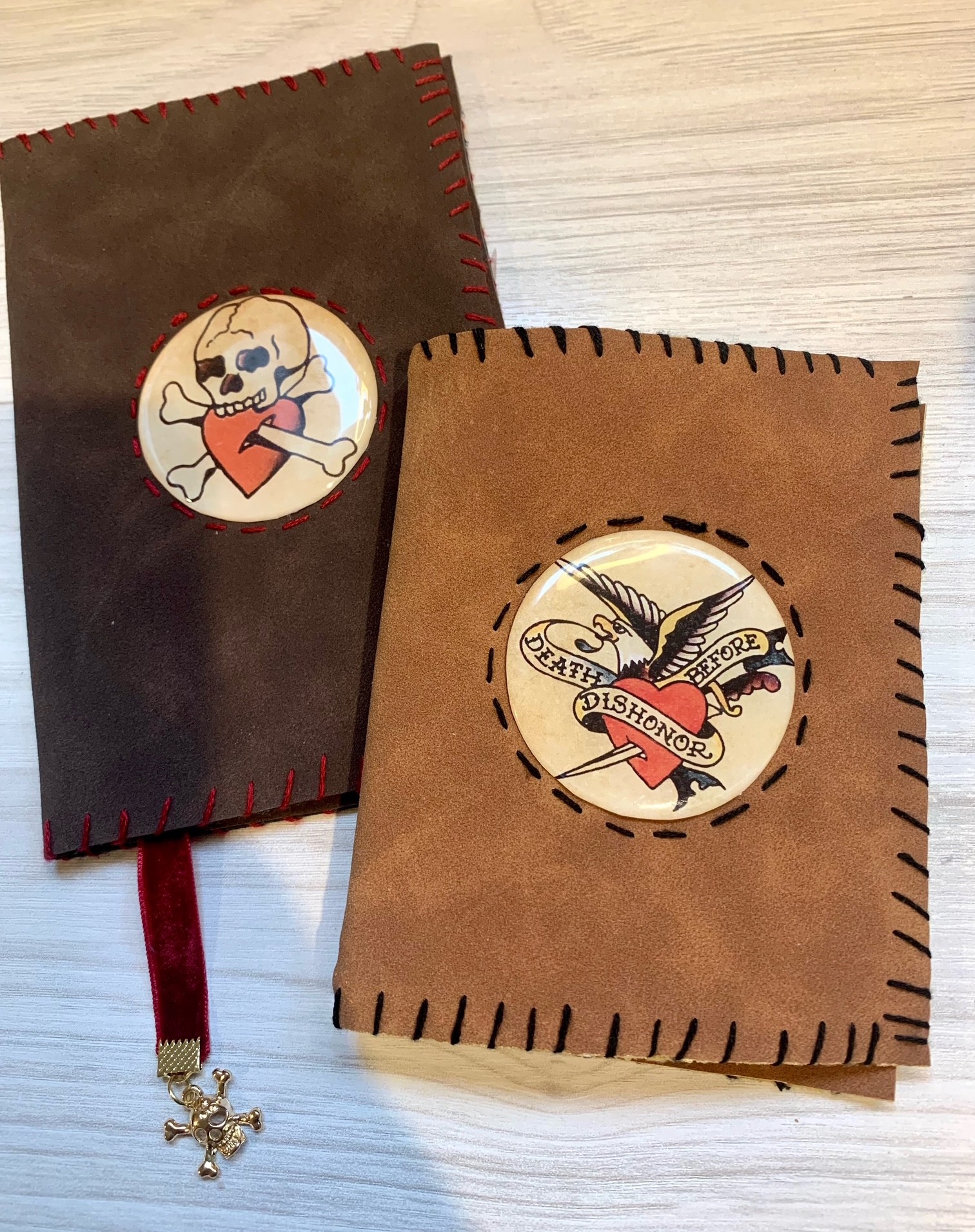 My experiences inform each other. I write about art often (Double Game on Substack). I make handbound journals with the details and practicality I always desired as a book lover and notebook user. My time in the tattoo world influences some of my embroidery imagery. There are layers to the work.