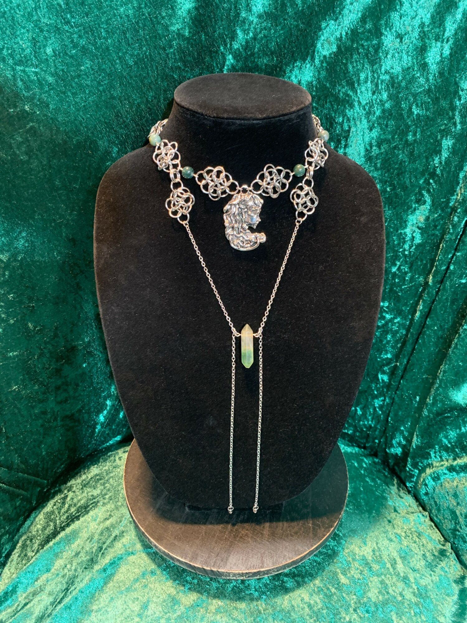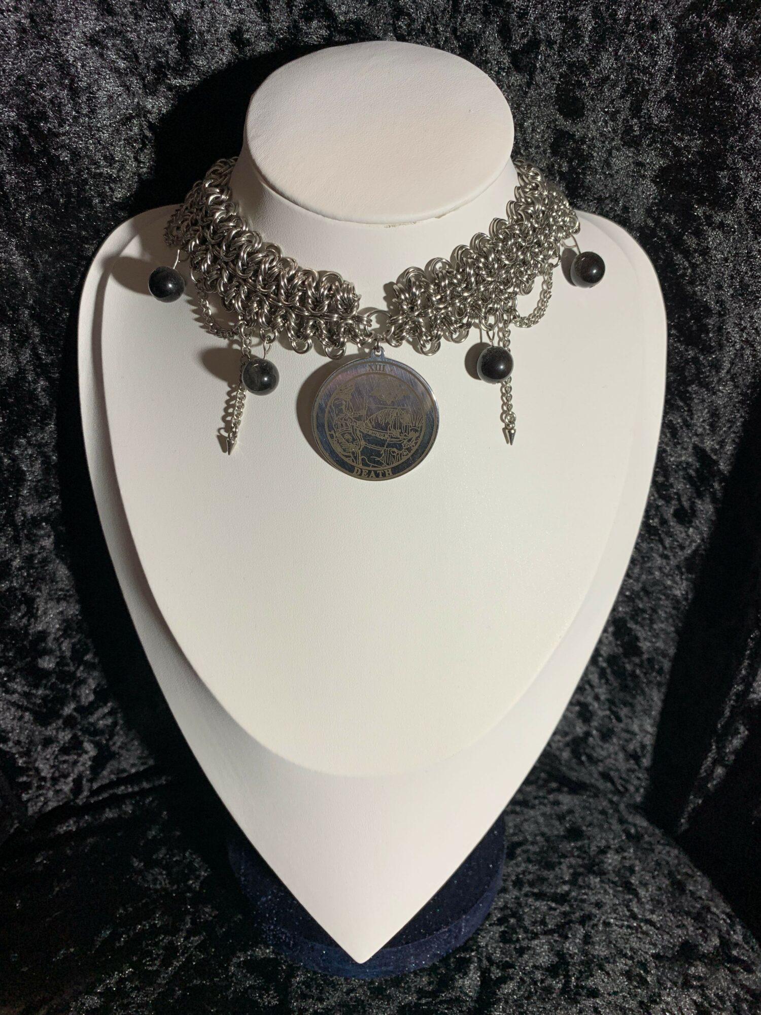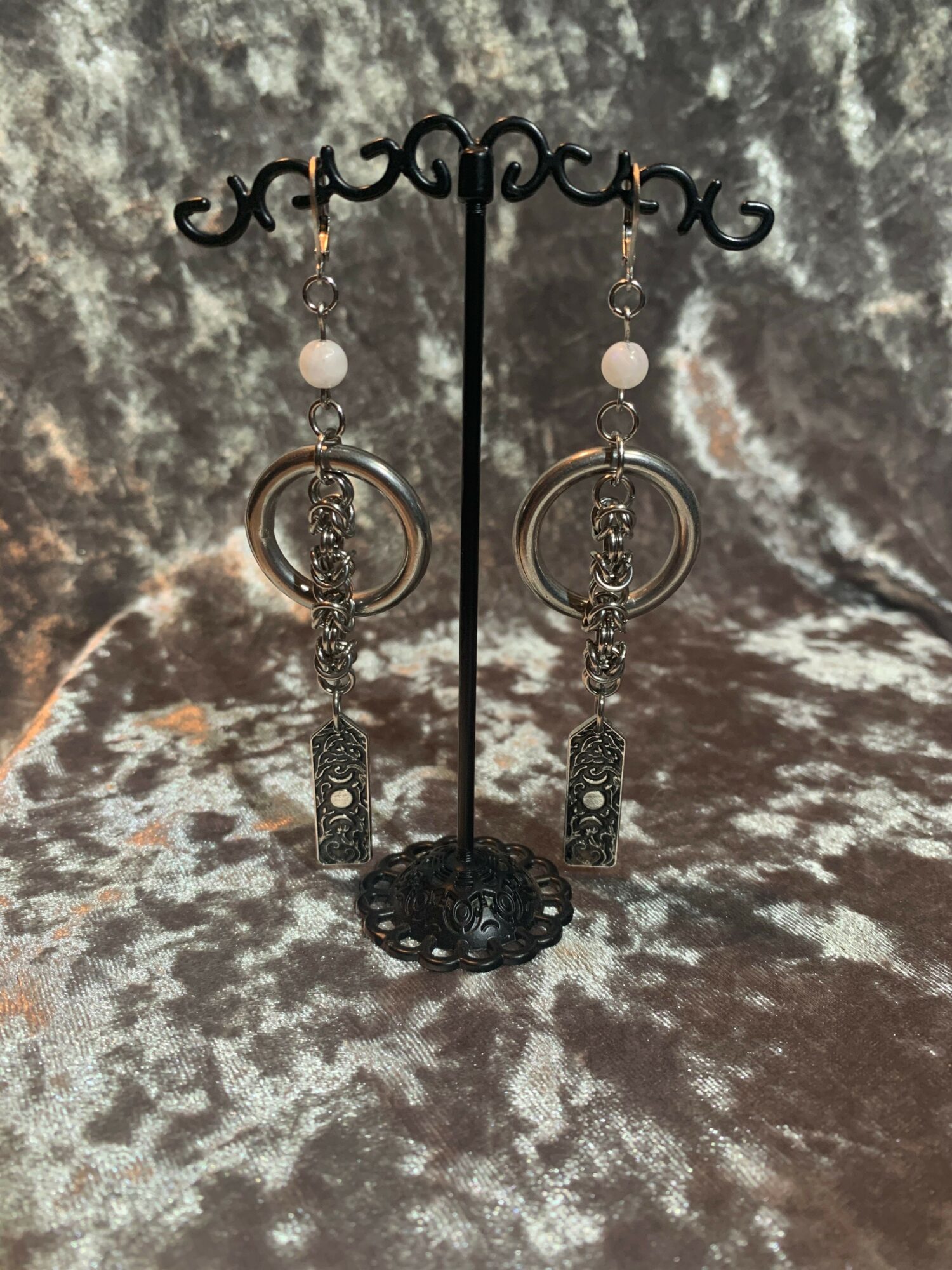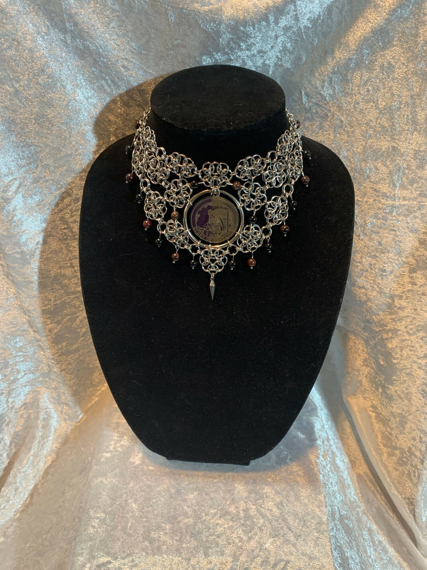 As a person who went through a spiritual journey, and loves music, I wanted to make jewelry with crystals/gemstones, and incantation necklaces/earrings. Including natural herbs, like rosemary or lavender, sealed for protection, and healing. I also wanted to combine chainmail and scale mail with my jewelry. I started making jewelry in 2022, and slowly started working my way up by showing my jewelry art on Instagram, then built a website on Shopify. I also have a Tik Tok. I also vend and go to events or shows. I make sure I use different materials from using aluminum, and stainless steel rings or scales, and genuine crystals/gemstones. Now my focus is the art of my jewelry on the influence I have that day, from listening to music or watching movies that inspire me. The name of my business is Same Old Phantoms and one of my inspirations for that name is one of my favorite bands, Mephisto Walz, with their song Dear Familiar Phantoms.