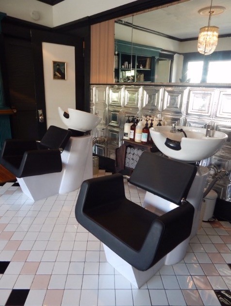 I have quite an imagination, and it sometimes gets in the way of reality. I don’t always see the steps to get where I am wanting to go, but my dreaming and perseverance saw me through this one. I am good at visualizing, so when I saw the space for the first time, I could “see” my future shop: the paint, the glow, the people the hope of it. What I couldn’t see was how much work it would take to bridge my dream into reality. I remember after my first day physically doing the work on my future shop I went home and cried and wondered what I got myself into. I felt the gravity of this epic undertaking. I spent several hours spackling holes in the ceiling, and it looked like I accomplished nothing! It was in those hours that I gained a better idea of the physical labor that would be involved in putting my shop together, and I had no money to hire anyone to help me, so I had to do it. It took a total of 2 1/2 months to put the shop together. After a full day shift at the salon, I headed over to mine to do a few hours of painting, sanding, or grouting by moonlight since I hadn’t set up my electricity at the time.
