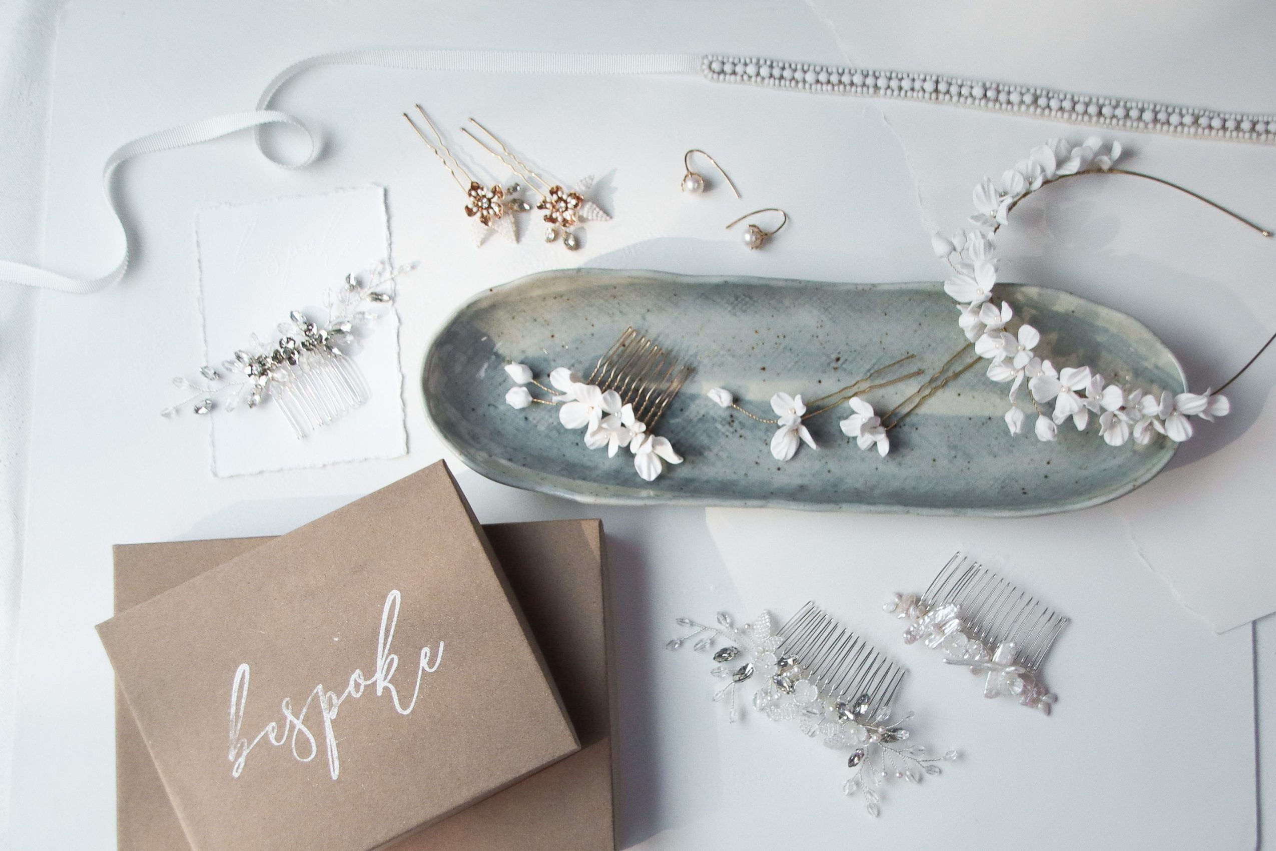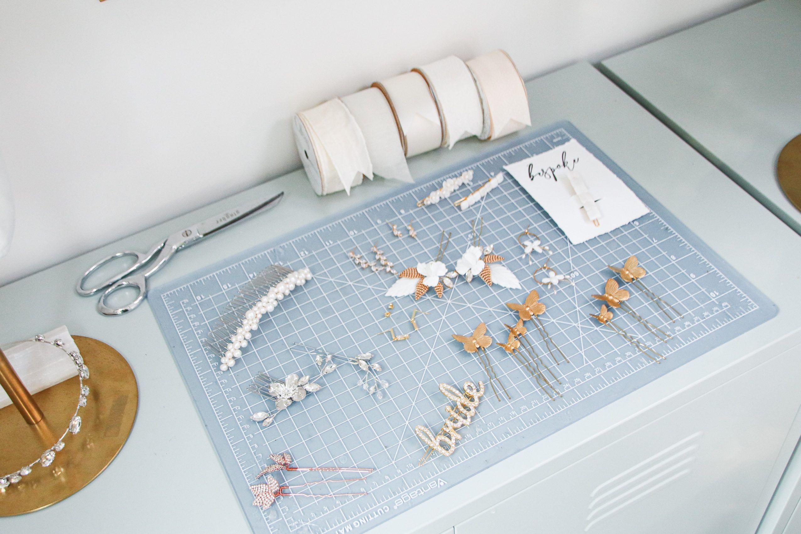 I started Bespoke Bridal in late 2016. I make handmade bridal accessories. In my previous life, I came to Los Angeles to work in sales and distribution for film and television. Burnt out and exhausted after nearly a decade of that — it just wasn’t for me — I decided to return to my lifelong interest in fashion and embrace the pure joy of making things with my hands.