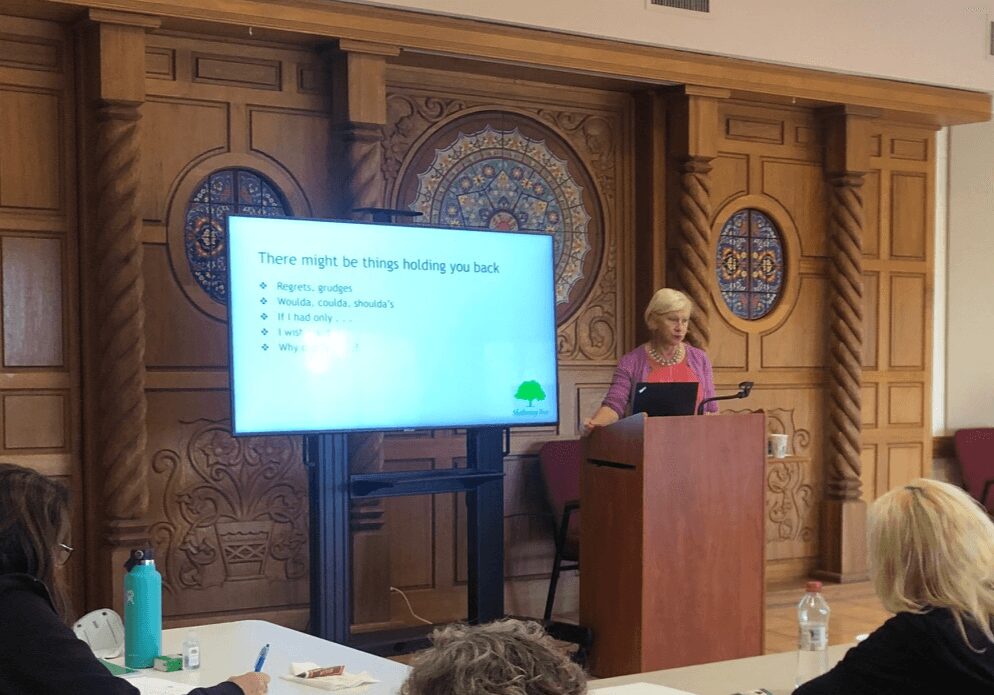 Through my company, Sheltering Tree, I offer 1-on-1 coaching, group programs, workshops, and retreats that support people through change, loss, and renewal. Whether I’m guiding an individual through personal loss or helping a business manage organizational transition, my work centers on helping others make peace with the past so they can embrace the promise of their future.
