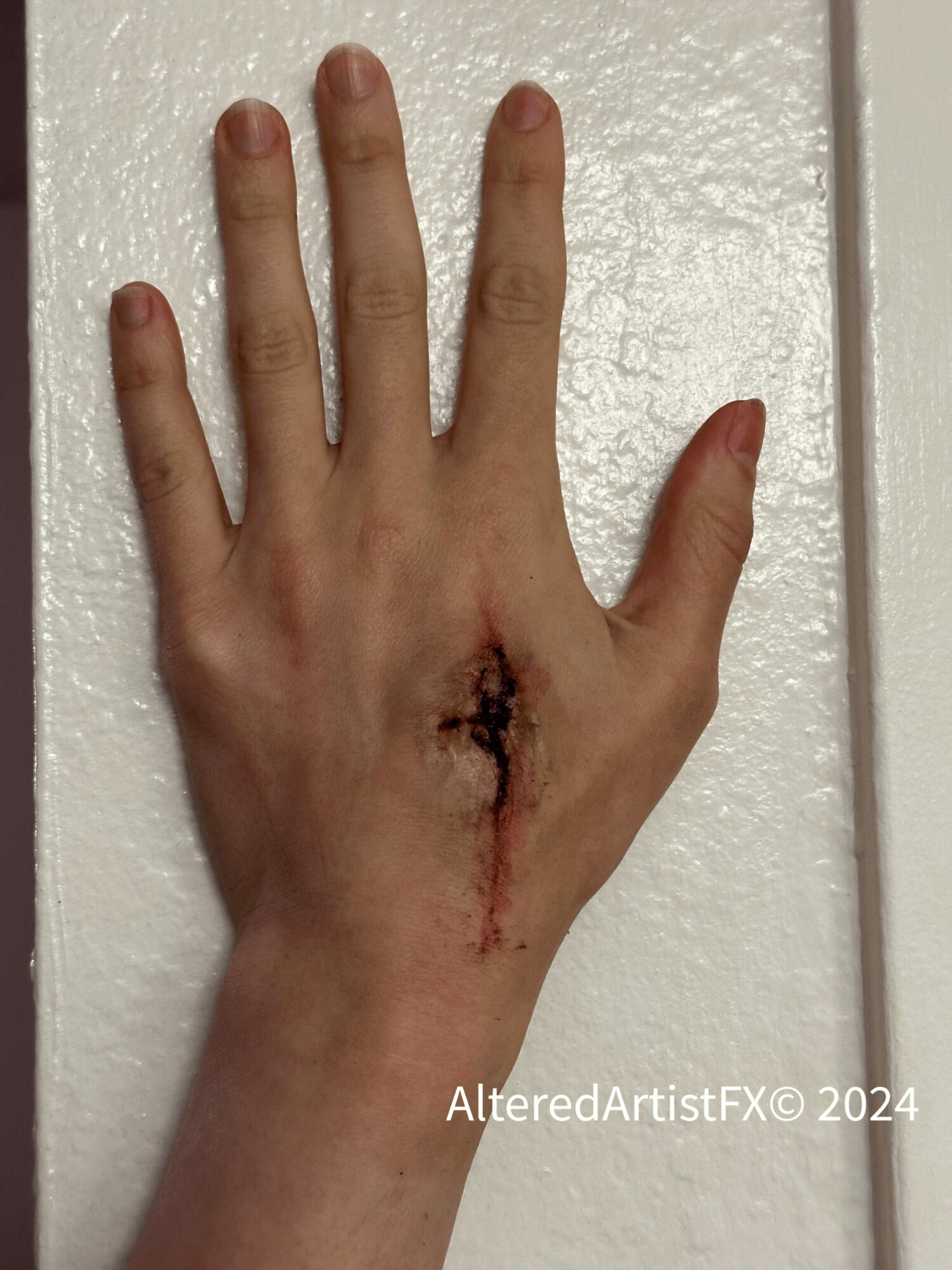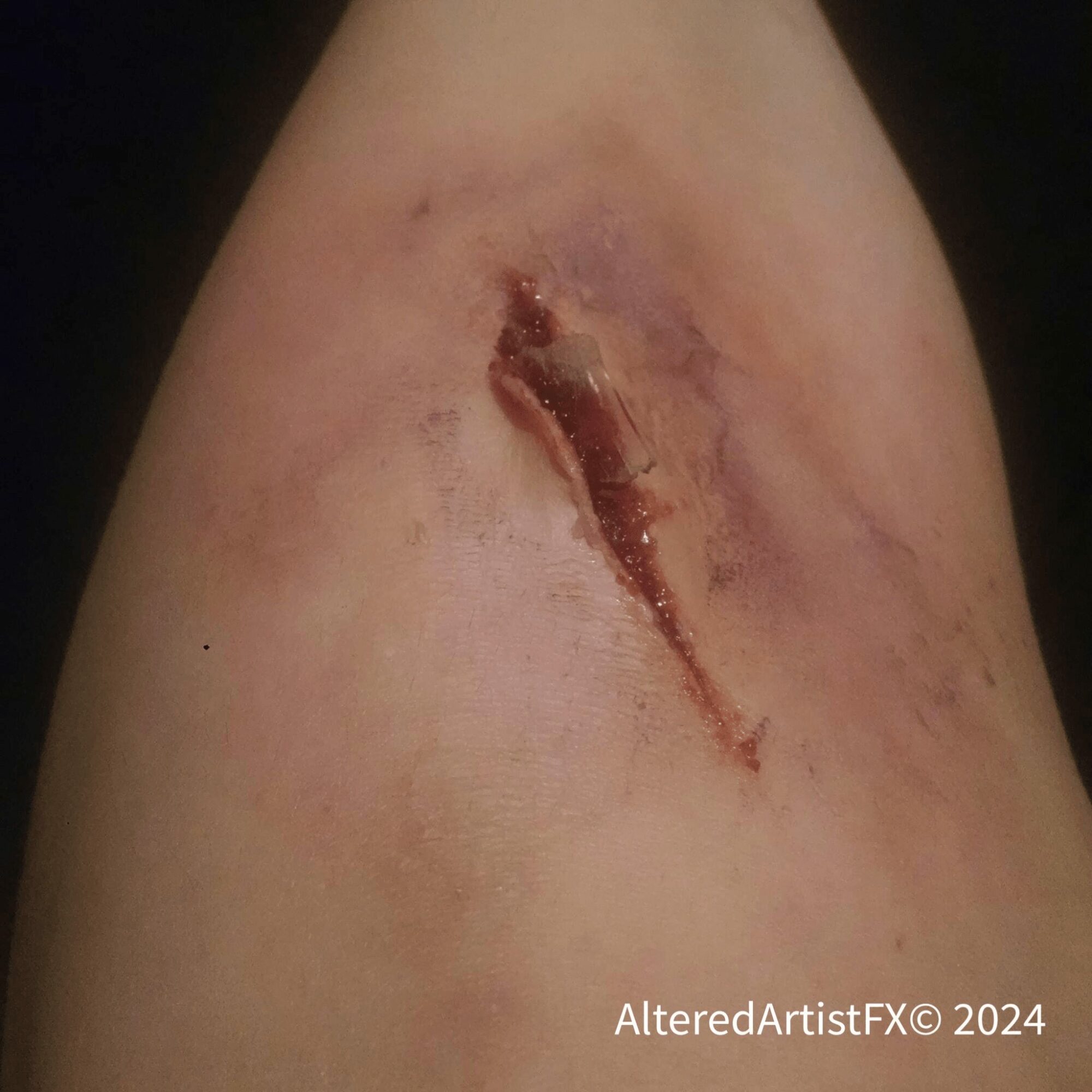 While my BFA is in Musical Theater Performance I am widely known for my work in FX Makeup and prop fabrication. In theater/film if a character needs to have a fake injury or body modification (e.g., horns, different nose shape, tattoos, piercing, etc.) I would be called in to either apply makeup on set or to create an appliance beforehand.