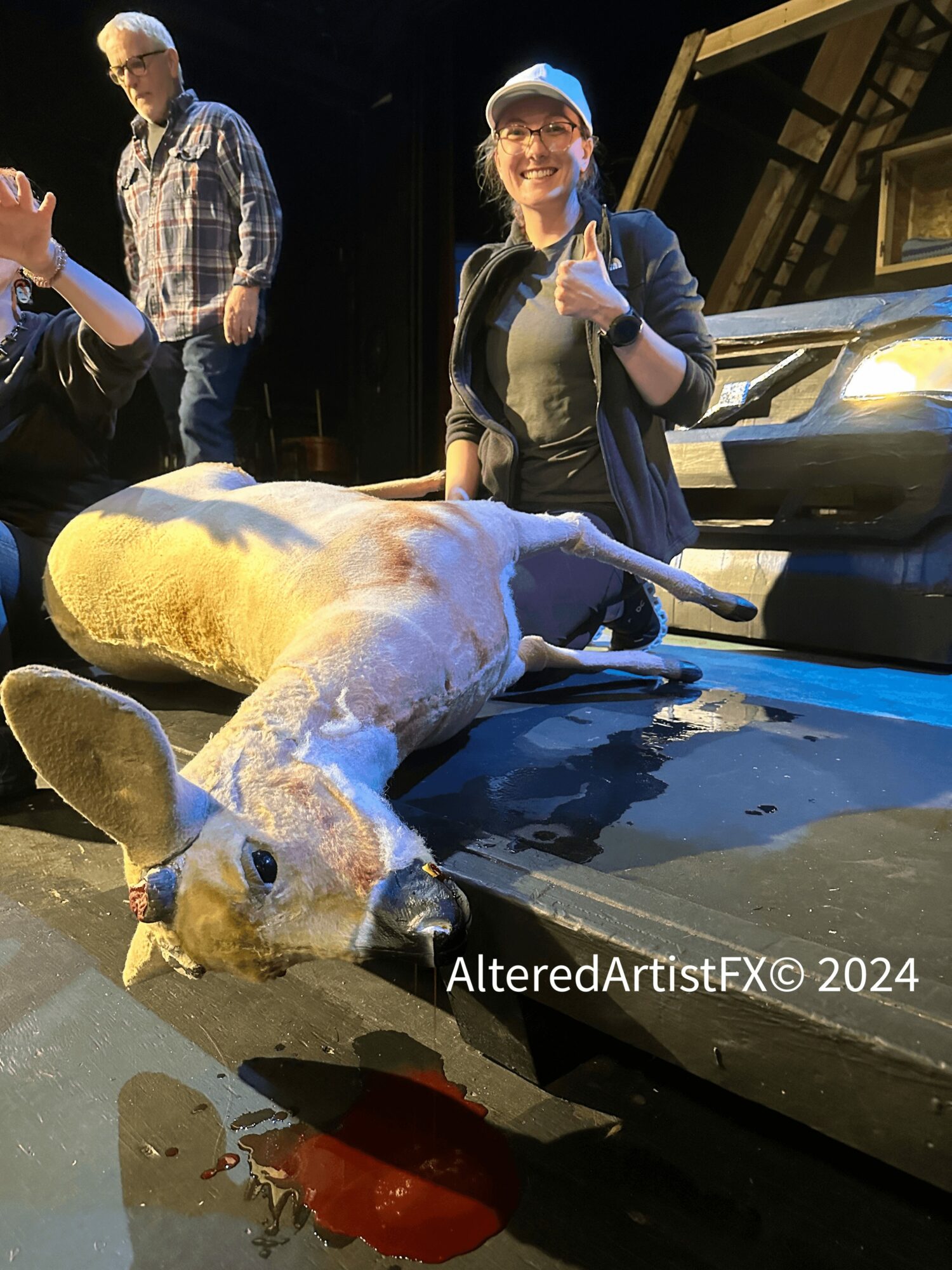 Most recently Abigail Rose was the Head FX Designer and Fabricator for Ojai’s production of “Deer” by Aaron Mark, where a life-sized deer was hit by a car and proceeded to bleed onstage for the duration of the show. Such a show required Abigail to make over 12 gallons of fake blood, luckily Abigail’s background in FX Makeup made this an easy task to undertake.