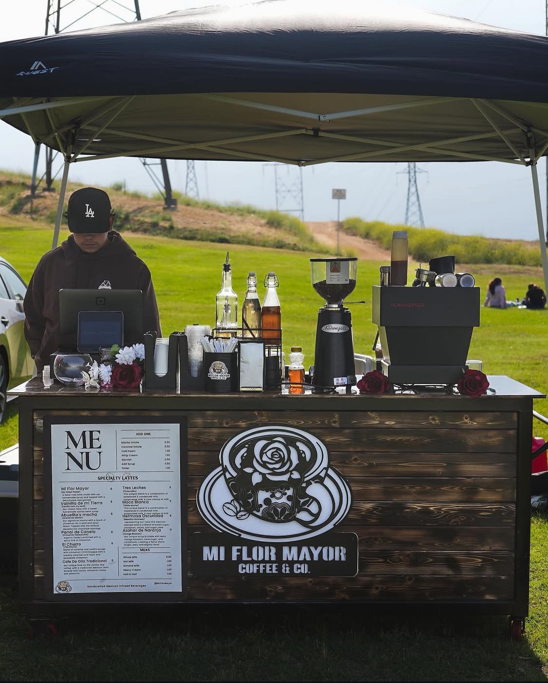 I pitched the idea to my dad, Héctor Montes de Oca, and my brother, Bryan, about starting a coffee cart together. My dad and I drove all the way to Seattle and back in two days to pick up our first carts ourselves. That trip really marked the beginning of Mi Flor Mayor Coffee & Co. — built from nothing but an idea and the belief that we could create something meaningful.