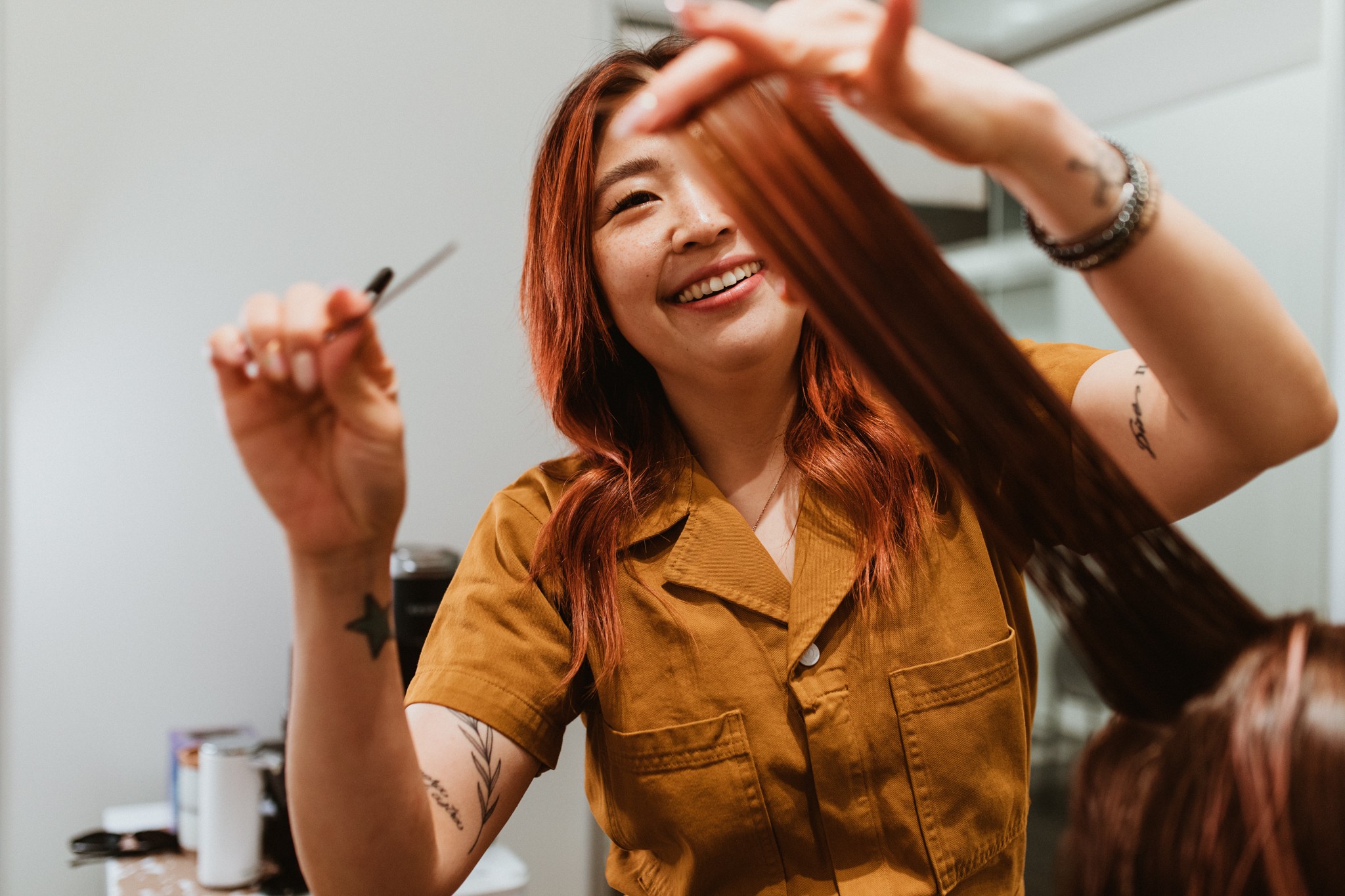 I am a second-generation Korean American, born and raised in Koreatown-Los Angeles. Hairdressing is my profession and I’ve been working in the beauty industry for thirteen years now. Growing up, my interests revolved around art. I loved painting and drawing as a kid. In general, I’ve always enjoyed making things with my hands. In high school, I found interest in beauty, fashion, and music. After graduating high school, I enrolled into a Cosmetology program. But I dropped out because I wasn’t sure if it was right for me. I took a three-year break and eventually went back to school again. I had the best time in beauty school. I’ve worked in a couple of different salons in the LA area for most of my career. In 2020, I opened my own independent hair business in central Hollywood.
