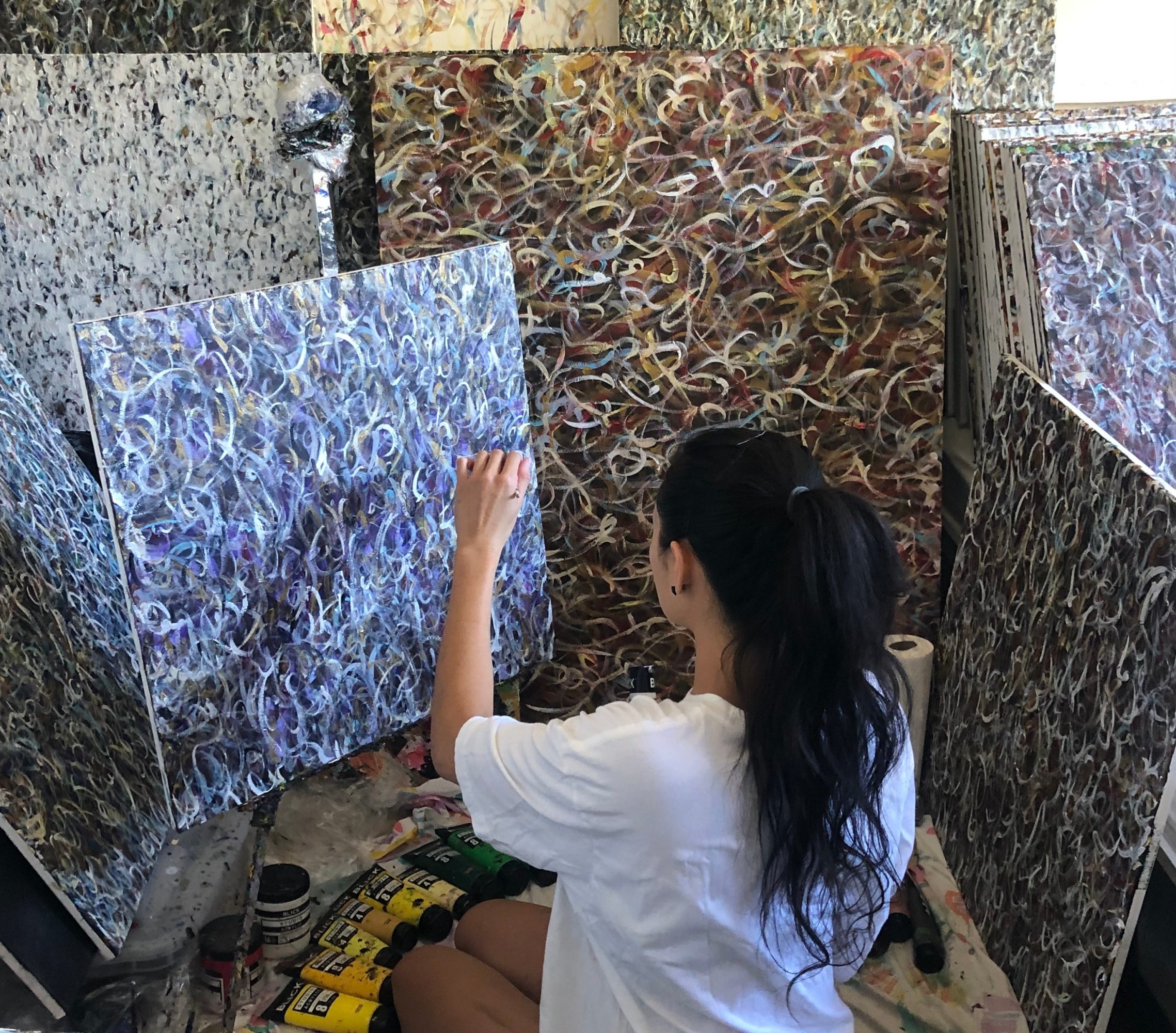 Painting (abstract expressionism) has taught me that the less I try and control things, the better they turn out. This isn’t to say to not put in any effort, but more of just painting without forcing the result to look any certain way. I realized that when I have a structure and have an expectation of how the painting should turn out, they always come out not looking free, and have this “restricting” energy to them. When I quiet my thoughts and just surrender to being a channel for the energy to come through me, the intelligence knows what it’s doing. It doesn’t need my conscious mind to get in the way.
