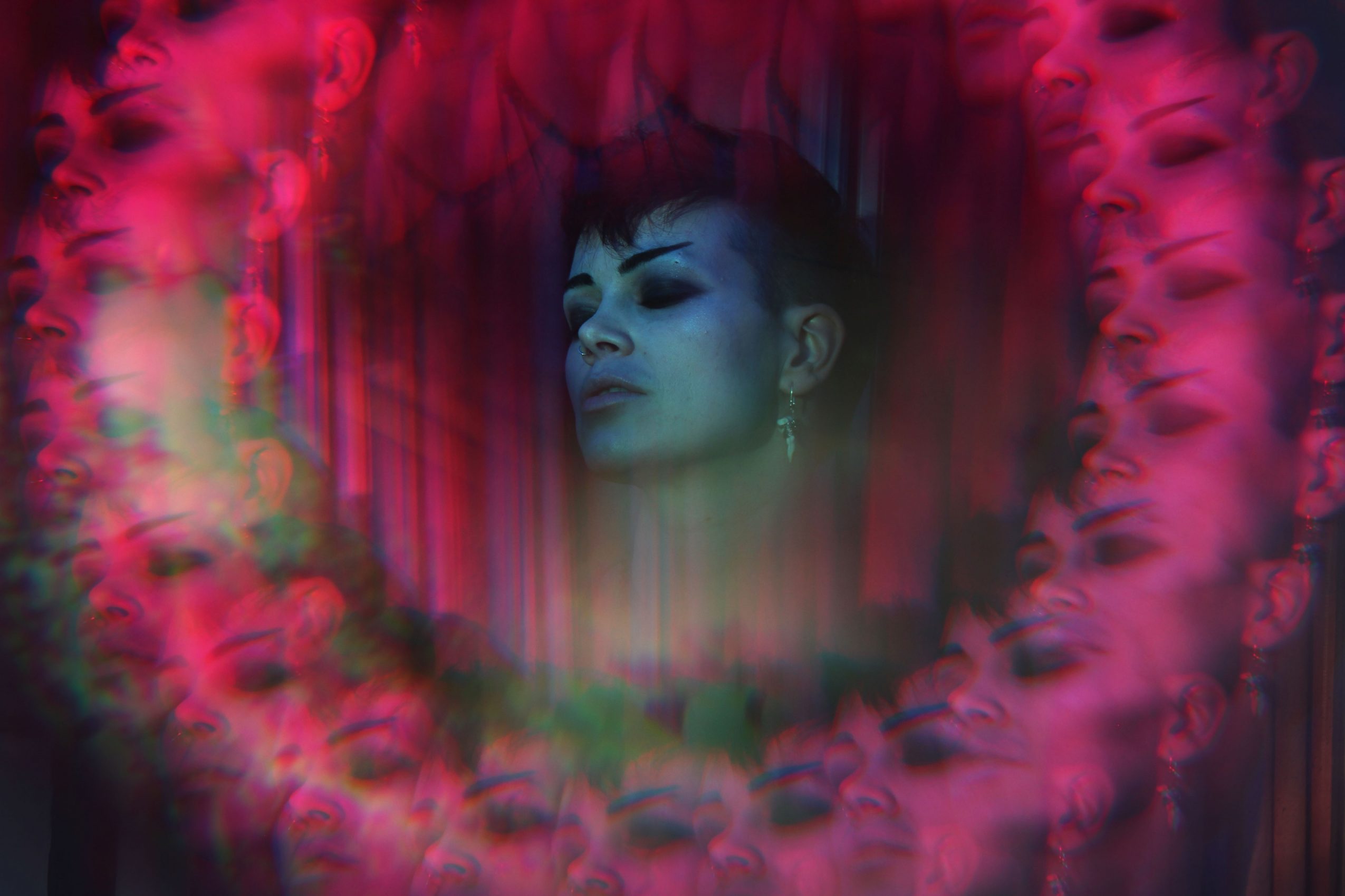 When I was a student at Laney College in Oakland, I was fortunate to work in one of the few remaining community college darkrooms. It was through the medium of film photography that I truly found my passion. I became obsessed with in-camera surrealism. Using film really encourages you to be innovative in obtaining a desired effect, especially as I was printing in a darkroom at the time. You have no access or thoughts about editing with digital tools like photoshop. This is when I began building my own prisms to fit around different lenses and using all types of color filters and reflective surfaces. This is also the time in which my project Mortality Salience began to develop.