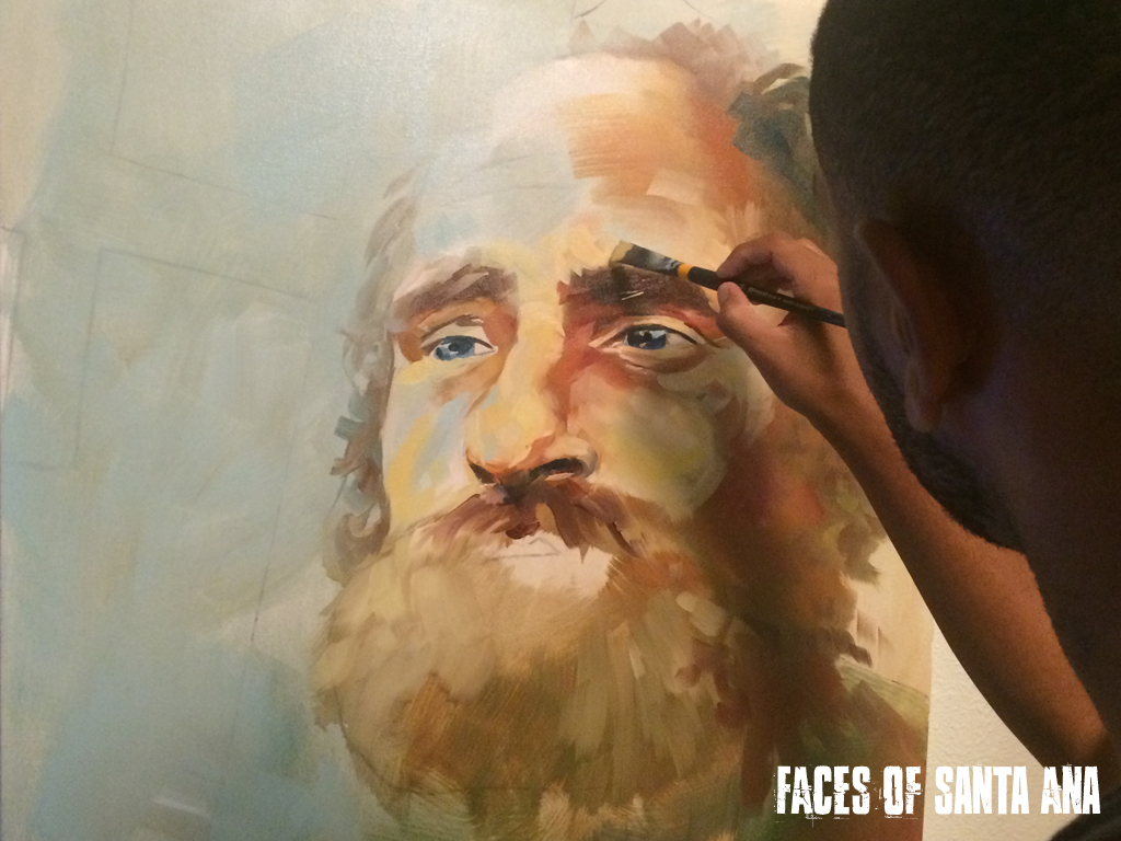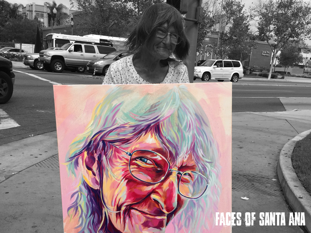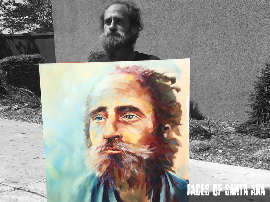 Faces of Santa Ana is a Non-Profit Organization that uses fine art to dignify, instill hope, and financially support our neighbors experiencing homelessness in Santa Ana. We first establish a relationship with our clients, then ask them to paint their portraits. We use color to shine a new light on the darkness that usually surrounds their current living situation. As an artist, painting their portraits is a way to connect with them in a deeper way. We also have stumbled upon a unique ability to build trust within our displaced population through this process. Faces of Santa Ana then focuses on selling the artwork and 2/3 of the proceeds go into a “Love Account” for the client.