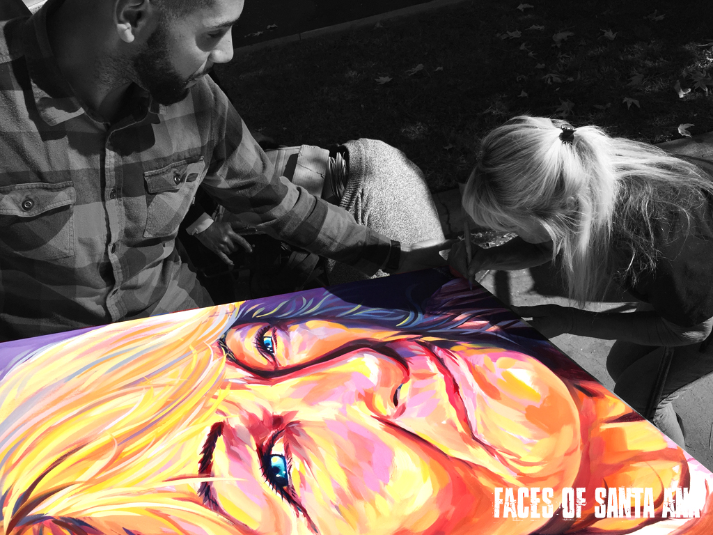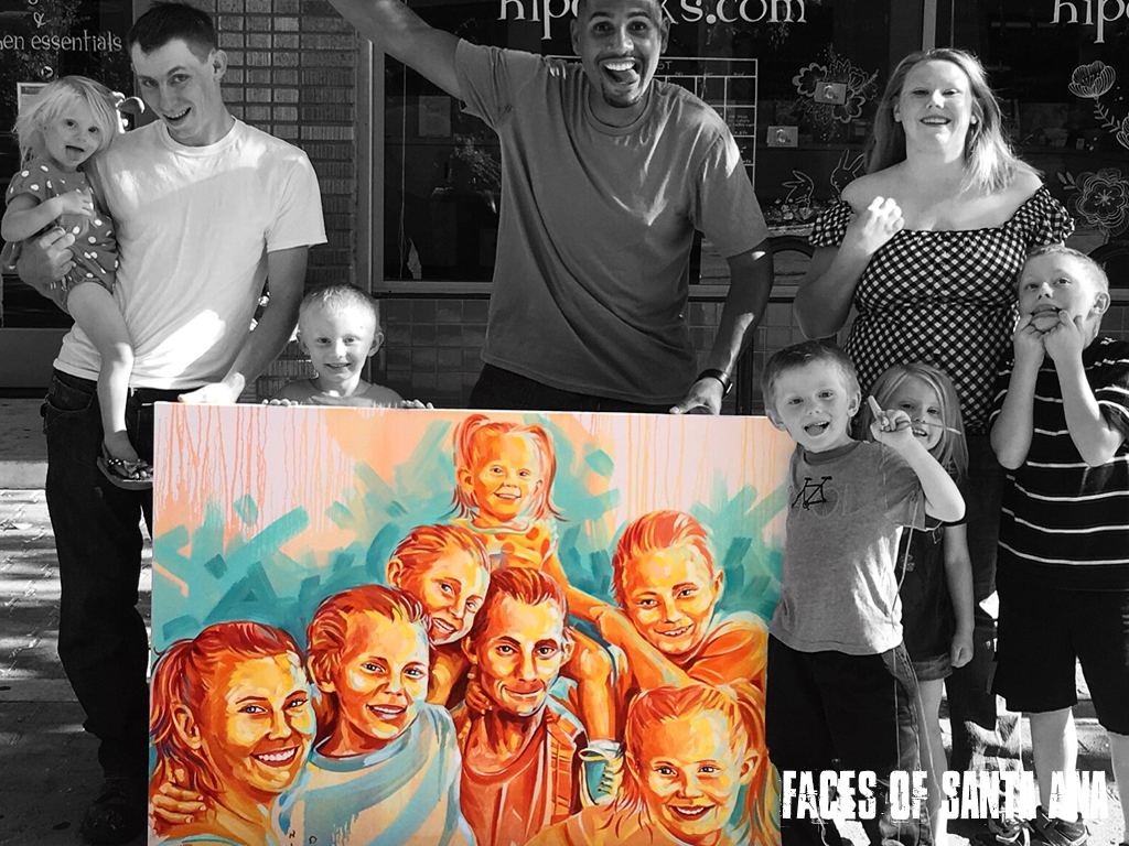 We are most proud of the way the art has organically connected people. A recent testimony highlighted the fact that a daughter was reconnected to her birthmother whom she has never met through finding out about Faces of Santa Ana. Her reconnection to her mother, was not overshadowed by the label of homelessness, but instead she saw her mother through the eyes of an artist focused on dignifying using color palette and brush stroke. We believe there’s something supernatural in art and creating. We enjoy watching how these paintings organically weave hearts together.