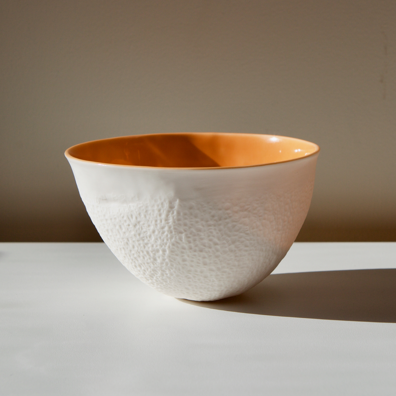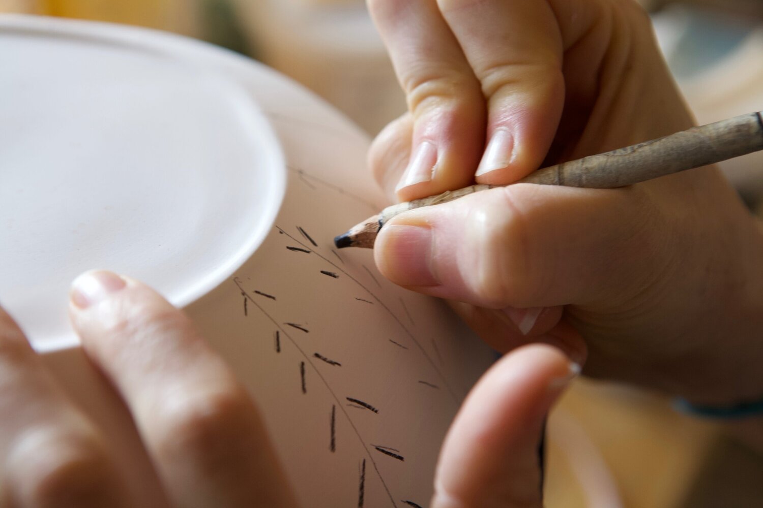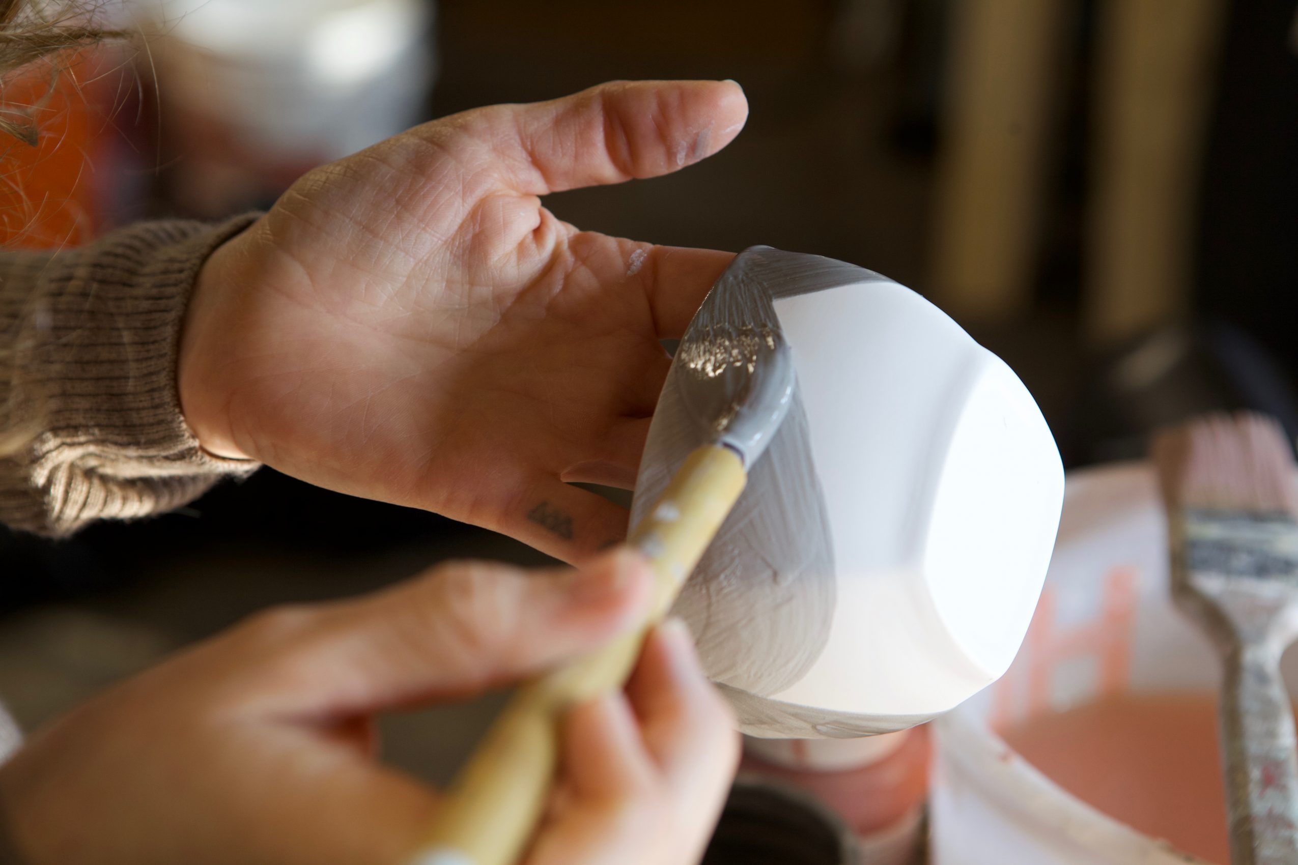 I am a multimedia artist specializing in slip-cast porcelain ceramics. Slip casting feels a bit like alchemy to me; I am able to take an ephemeral object like a fruit or vegetable and transform it into an enduring piece of art. To do this, I create plaster molds of seasonal produce, which become bowls, vases, and incense holders in my mold-making-process. When I fill the plaster molds with slip (liquified clay), the plaster absorbs water from the slip and forms a clay shell. The shell is extracted from the mold, cleaned up, fired in a kiln, sanded and glazed, and fired again until it becomes the glasslike and translucent finished piece. Recently, I have begun designing, rendering and 3D printing forms that will be canvases for more detailed surface decoration.