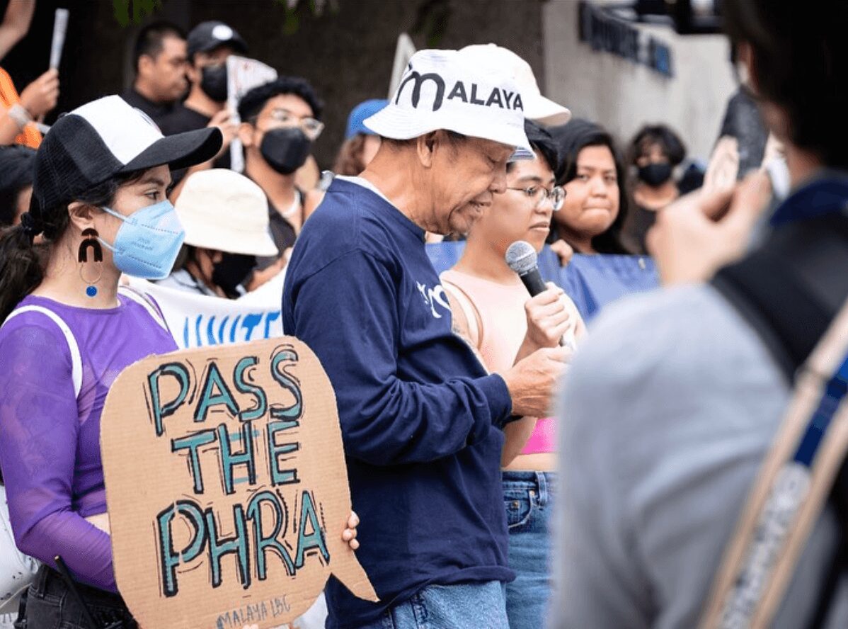 Filipinos in LA often work in blue-collar jobs, such as home caregivers or domestic workers, factory workers, and of course, in healthcare—-all of which are settings where many experience workplace injustices, even at a classic fast food favorite, Jollibee. One issue that has been going on for several decades in the Filipino community is wage theft, which has been a common occurrence for overseas Filipinos workers (OFWs) for about as long as the Labor Export Policy (LEP) has been enacted in 1974. Nationally, Malaya is also working towards lobbying efforts and outreach on helping to pass the Philippine Human Rights Act (PHRA), which aims to halt our US tax dollars from funding state violence and increasing military aggressions in the Philippines, preventing the land from becoming a military playground for the US and China. We work with so many different groups, even high schoolers and non-Filipinos join in on supporting the movement!