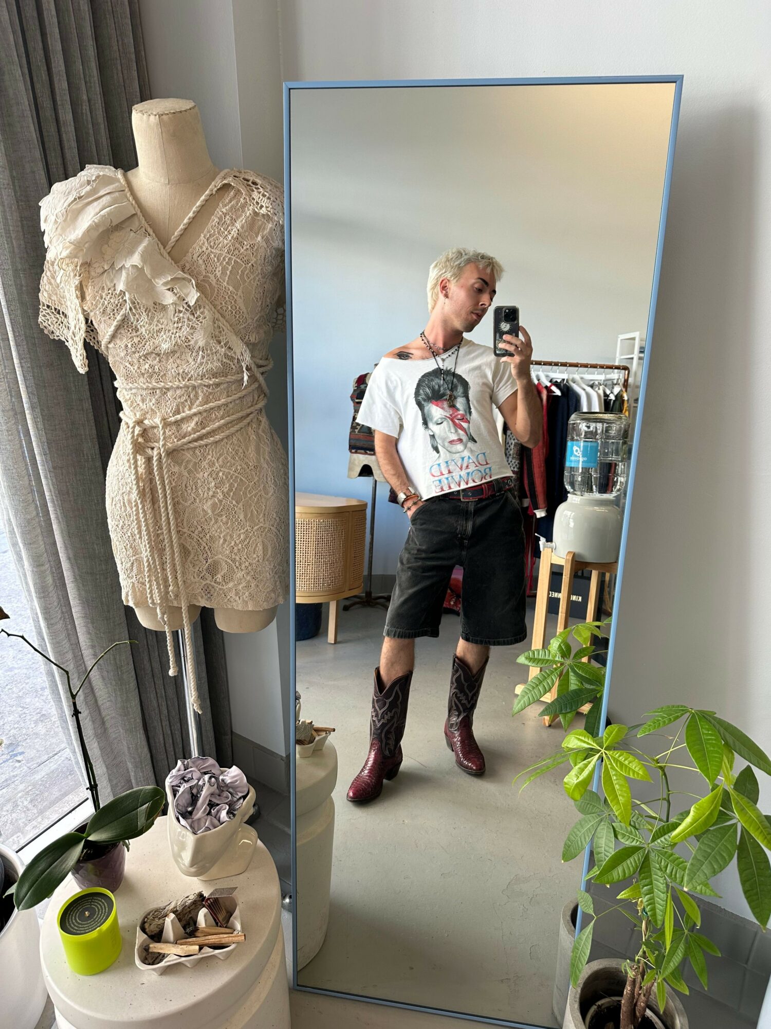 I currently work for a luxury, ethical fashion showroom in DTLA and also part time as a buyer at a local thrift store. Both jobs allow for me to meet so many incredible people with unique style and creativity, that encourage me to freely express my own individuality. Something I’ve always been known for is having my own unique sense of style, and helping others find their own. I get to do a lot of this at the thrift store through the clothing I help curate for the store, and also the constant styling of mannequins throughout the store. Now at the showroom I’m getting to use more of my business management skills, which I learned in retail and in my education. Add in building rapport with incredible stylists and designers, and now I’m getting to truly paint my own picture. I think what sets me apart the most from others in my industry and community is my versatility, and flexibility. My niche is the fact that I don’t have a specific niche—I aspire to always be a Jack of All Trades with a million skills under my belt. Not all creatives are like this, especially designers, as we are taught to find our image and our personal brand. I think my ever-growing versatility sets me apart from the rest, allows ample opportunities for me to be apart of, and means constant new things to explore. My world view is far more than just design or just creating an image. If I get too bored of one medium, I just try another and apply my creativity to all parts of my life. This is my favorite part of artistry and creativity, and I can’t imagine ever staying strictly in one lane. Allowing myself to grow and become a better version of myself each day, is the greatest power I could ever hold and by far what I’m most proud of.