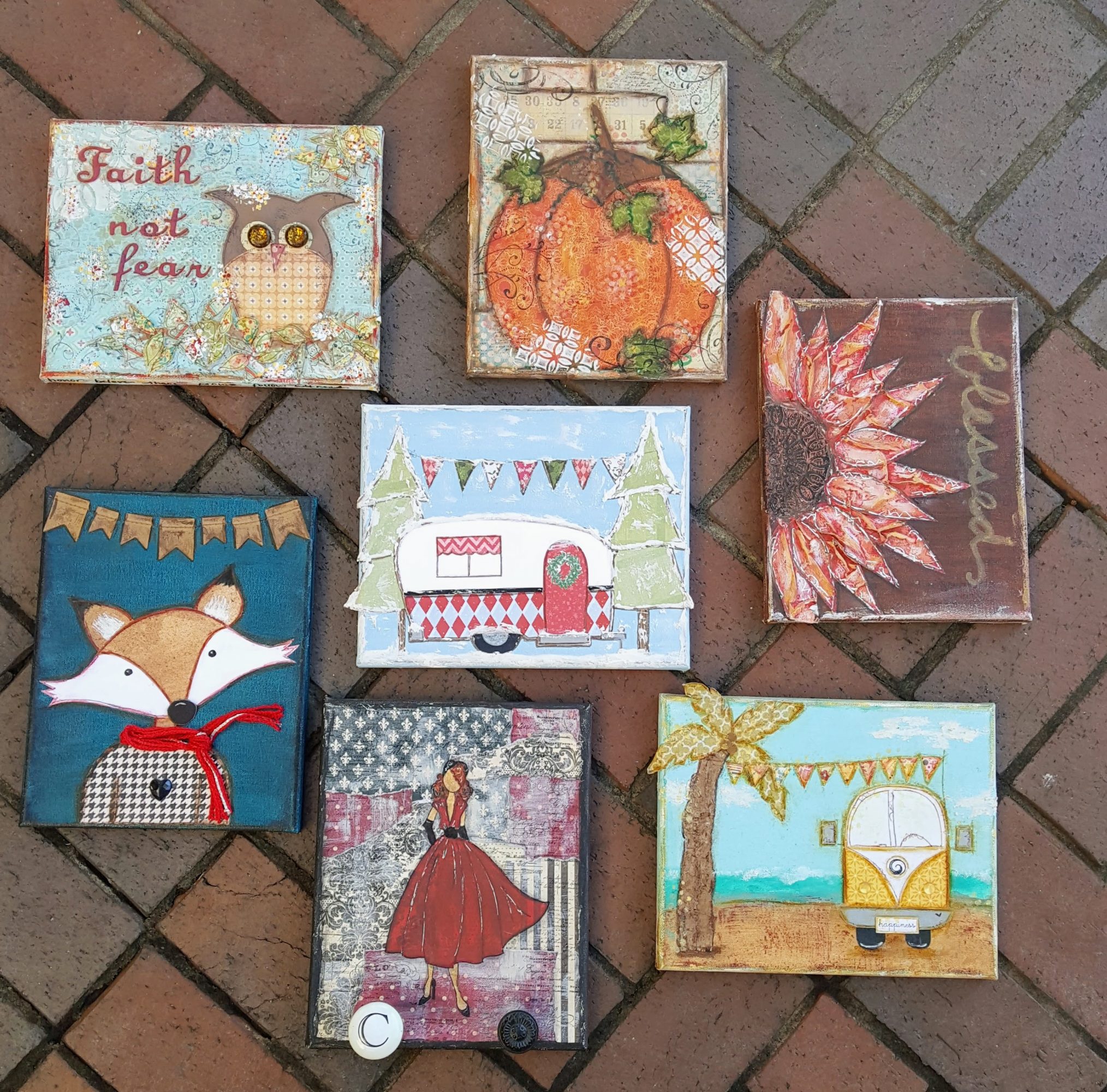 I love your art. & the fact you are my cousin Emma’s daughter makes me love you more. I have a friend here in Rockford that does almost the same thing you do.She is like you using every kind of paints & items to create.Your little trailer or mobile home reminds me of one she had in a show here.It’s so interesting how ones mind can come up with so many wonderful things! & the good thing is they want to teach others & share their gift! I wish you the best in your business. So proud of you.