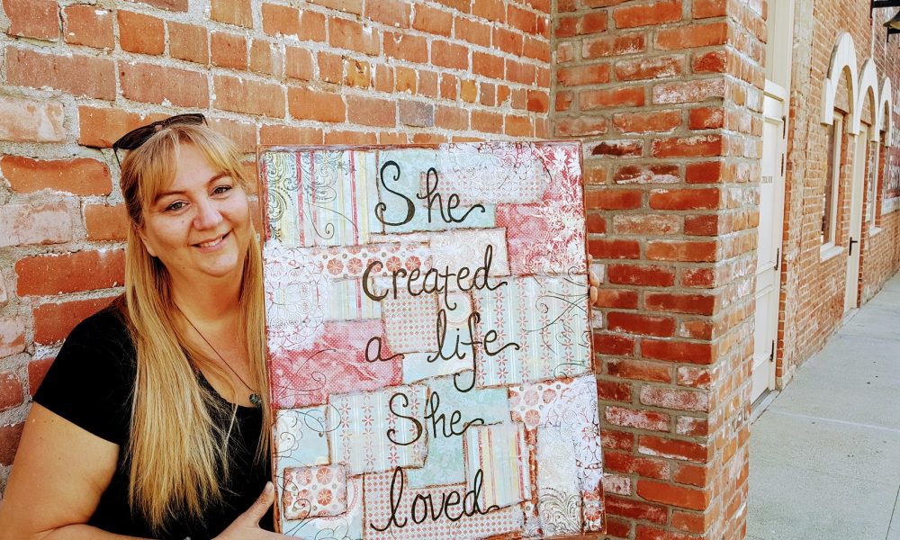 During my 40s, I realized my kids were getting older and didn’t really need me at home any longer. It was time to decide what I wanted to be when I grew up. At the time, I had a little greeting card business, but it wasn’t what I really wanted to be doing. I decided to take the idea of “create the life you want to live” to heart and I literally made up my own job. The two things that were on my heart were to make art and to share the process with others, especially those who didn’t feel confident in their creativity. I started teaching mixed media to a few local students and hosting a few events in my home. Then, at the advice of a friend, I added home parties. Three years ago, I started my summer art camp program, which is still my favorite event of the year, and it was from that event two years ago that one of the parents asked me to be a vendor for their charter school. This year I’ve started teaching for three charter schools and also at three of our local Hobby Lobby stores. It’s exciting to watch my little business grow.