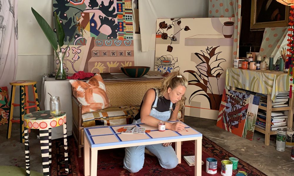 I am an artist, graphic designer and set decorator working out of my studio in Los Feliz.