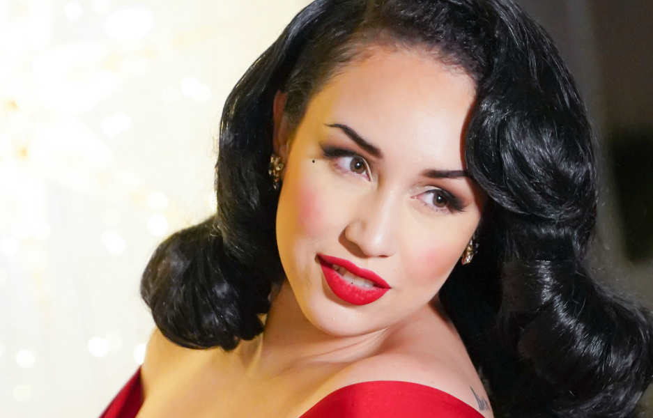 Growing up I’d always had an affinity for vintage aesthetics and I was fascinated by 40’s/50’s pinups and movie starlets. I discovered Bettie Page, Tempest Storm, and Dita Von Teese when I was in my teens and that’s when I knew I wanted to do burlesque, but as an adult I had a lot of reservations about my body that kept me from venturing into strip teasing. I didn’t delve into performing professionally until about three years ago when I relocated to Orange County from Sacramento for a change of pace. I moved and found myself really missing the performing arts. My boyfriend at the time was the one who encouraged me to start singing again and I decided to incorporate my passion for 1940’s glamour and pageantry into my ‘brand’ so to speak.