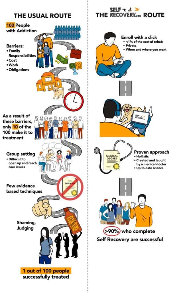 After recognizing the lack of quality care most people are able to find, I created Self Recovery as a simple way for anyone to save themselves from ineffective help. People are so relieved they can get better privately, and that not everyone needs rehab or daily groups.