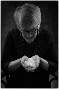 Artist’s statement: Recording moments in time and the thrill of seeing the camera’s view is ingrained in me since my kindergartener’s hands were trusted by my grandmother and my dad. We become amalgamation of our life experiences! Wishing to record the lives of others through their once touched belongings and or words, I love implying the human life with the actual, i.e. clothing and objects as portraits. When amassing the elements for my installations, it is a quest for authenticity. As an university art professor, my artworks were my voice. I gathered historical images (via photos, rubbings and ceramic molds) from graveyards throughout USA & UK, and sought to reawaken lost voices and testimonies of saints. I love the act of sharing art installations in community and all the human interactions that occurs. Community installations are such a spontaneous rush! Especially compared to the isolation of daily studio practice quietly focused on creating/collecting/preparing elements for a larger work. In so many ways with my art, I am panning for gold and unearthing the lost treasures of the voices of faith.