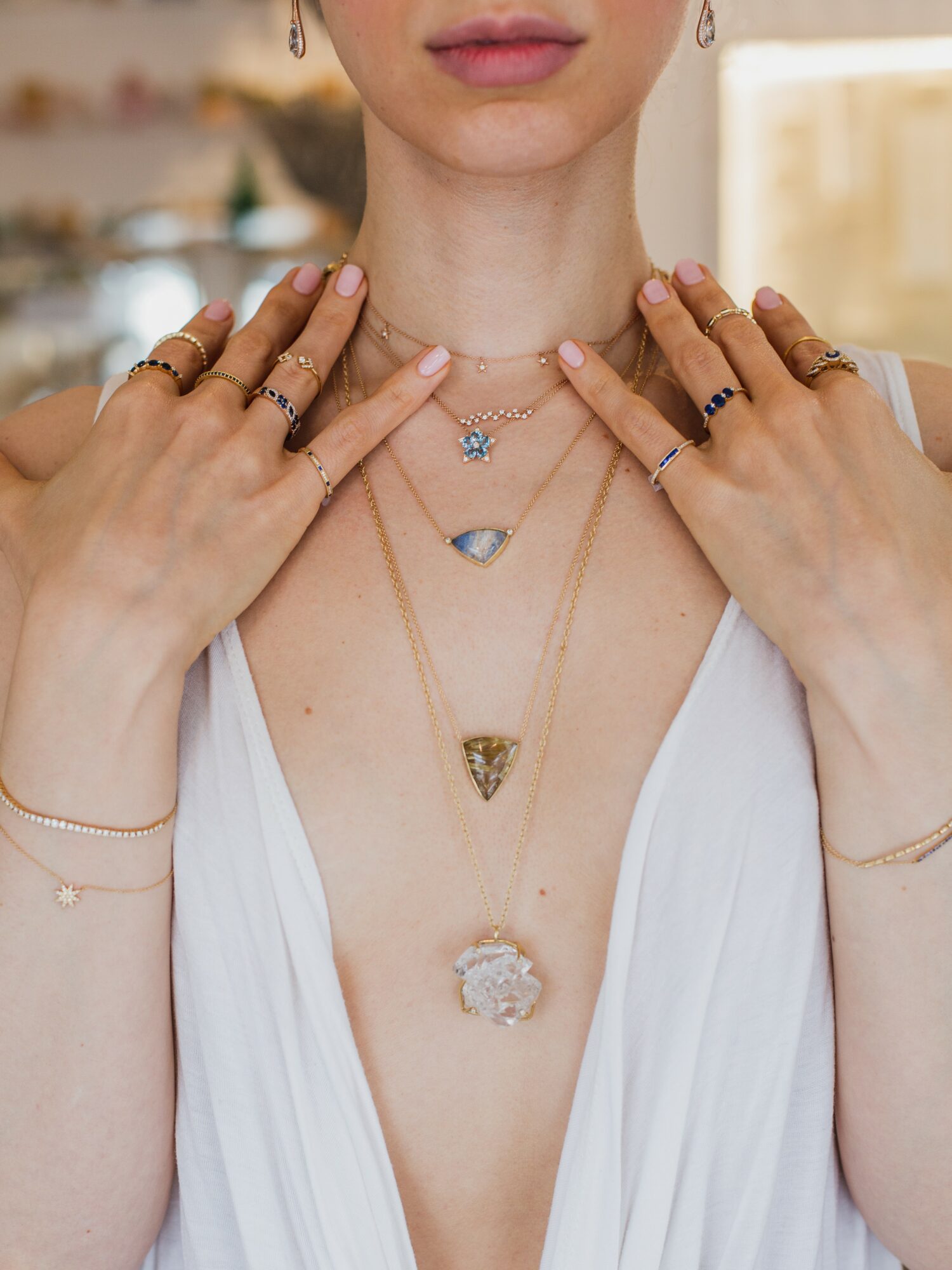 I have a dual profession because I’m also a fine jewelry designer and I work with the healing qualities of the gemstones, always honoring the beauty of the stone and it being about the gemstone or crystal itself.