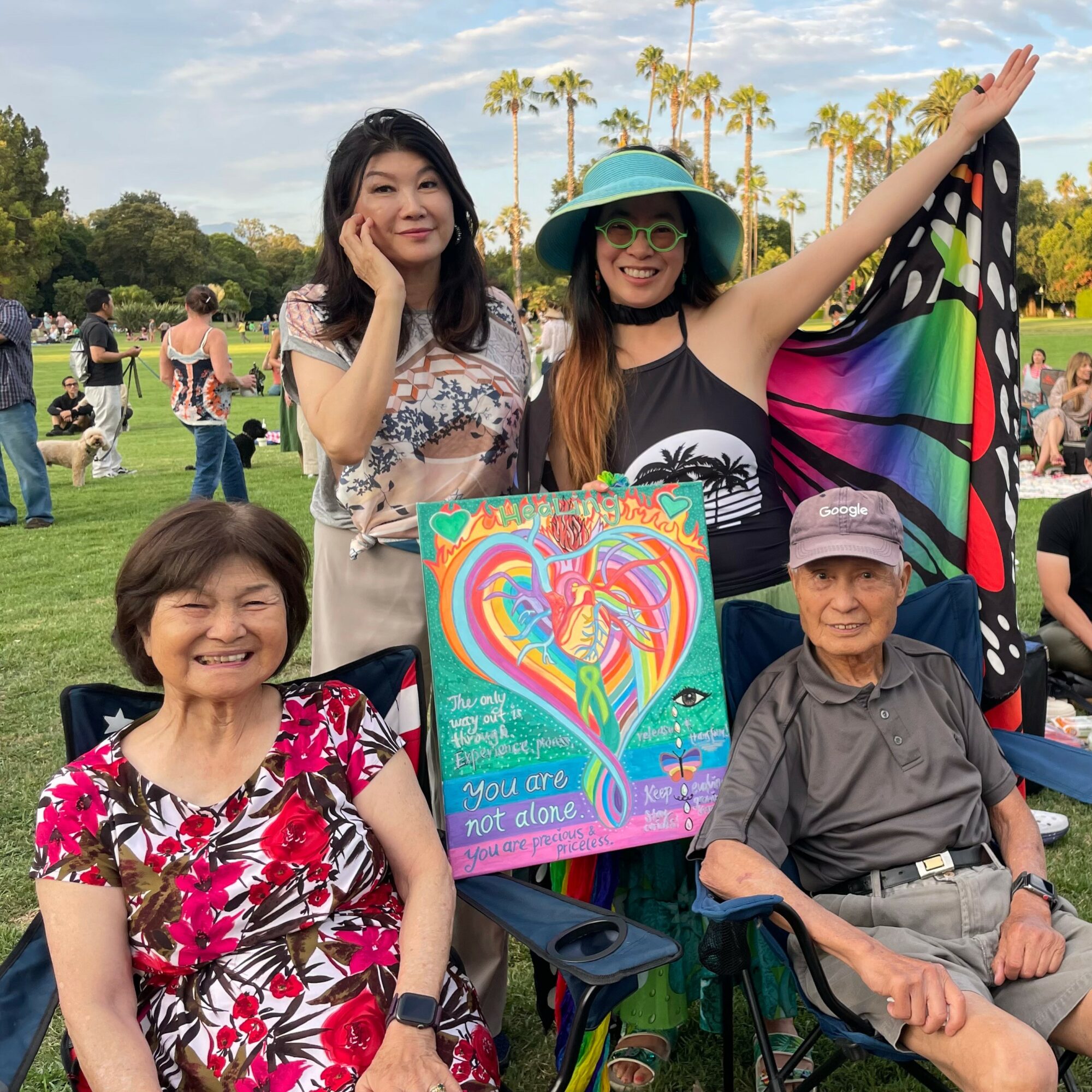 As for the things I’m most proud of… Ever since my Dad’s death, I’ve accomplished so much! I can say that I had the honor of doing nearly 20 speaking engagements, participating in 3 art shows, 4 parades wearing my rainbow butterfly wings, 3 open mic shows, 2 fashion shows, 1 chalk festival, win 1 art contest, sing for 3 memorials, play the piano for 1 musical show, audition for America’s Got Talent, facilitate 1 creative arts workshop, & perform for 1 stand-up comedy! Then last year, I was named as 1 of former Senator Anthony Portantino’s 2024 AAPI Community Champion and also honored by the New York-based organization Alliance for Rights & Recovery (formerly NYAPRS) for their Unsung Champions of Advocacy Award.