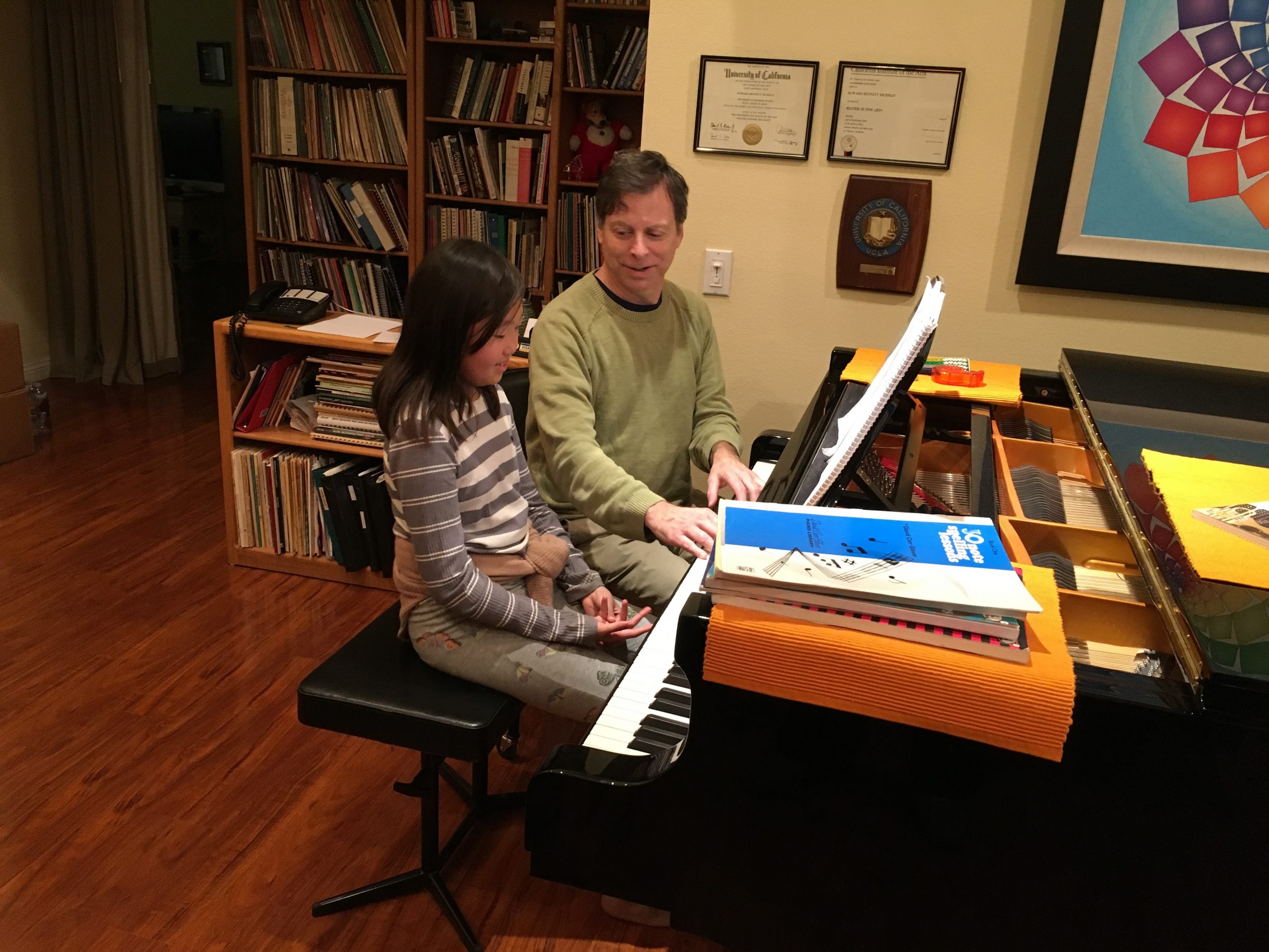After I graduated with my master’s degree from CalArts, I was invited to join the piano faculty, which I did from 1984-1987. That was a great experience. But since then, I’ve been teaching privately in the west valley. For many years, I had the vision of expanding my school to include teachers of other instruments. So, at the beginning of 2017, I started making that happen. I’ve been working hard to select teachers who are not only good at their respective instrument but who enjoy teaching and who follow a similar philosophy of self-empowerment. We now have almost every instrument represented at Richman Music School. Many of the teachers teach not only in-person in their studio, but also drive to the home and also teach online lessons, for those who are out of the area. Most of the teachers are willing to offer one initial lesson at no charge.