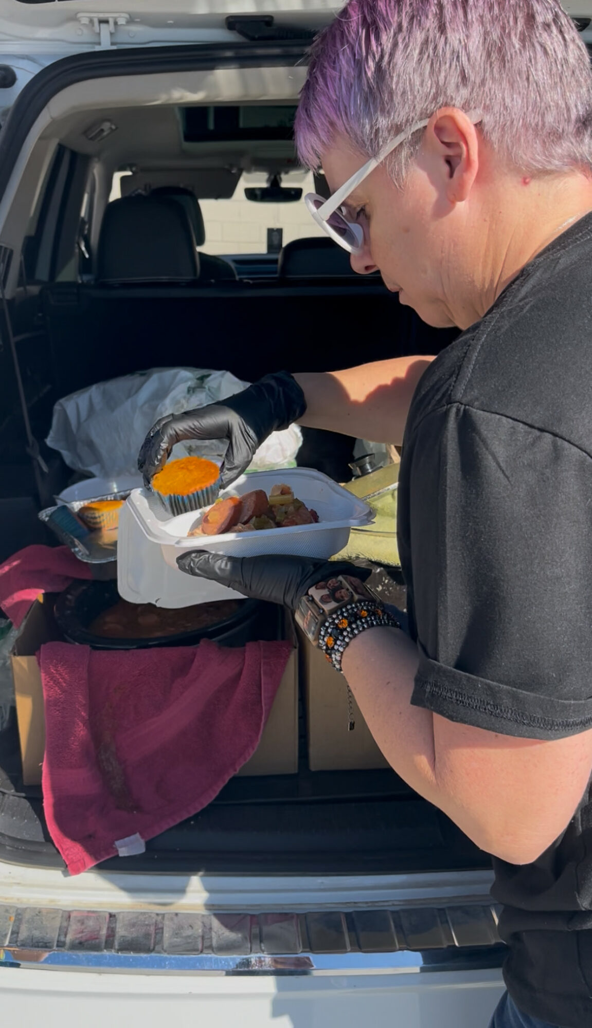 I wouldn’t say it’s been a smooth road, but it has gone a lot smoother than I expected. We’ve had our fair share of little hurdles—like getting a nail in our tire during a mobile serve and needing an emergency patch, or my car battery dying right before a food pick-up, or experiencing a leak in my new storage unit during all the recent rain. Thankfully, I have a community to step in, and we find a way to keep going. The work of picking up supplies/ingredients, cooking, and serving food via vehicle is not overly complex. It does, however, take time, patience, and labor. None of these setbacks deter us! If anything, they make us even more grateful for the work we get to do once everything is fixed. The work is deeply rewarding! We are fundraising for a van for our serves so we can bring more meals and essentials on single trips.
