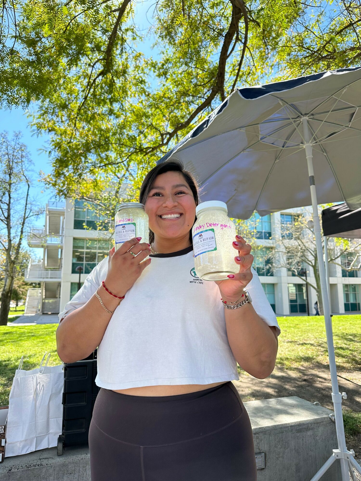 It definitely hasn’t been a smooth road, but it’s been a meaningful one. Starting Menos Más meant stepping into an unfamiliar world — especially as a first-time business owner. I had to learn everything from marketing and design to managing inventory and setting up at farmers markets. There were moments when sales were slow, the weather made pop-ups challenging, or I questioned whether people would truly connect with the idea of refilling.