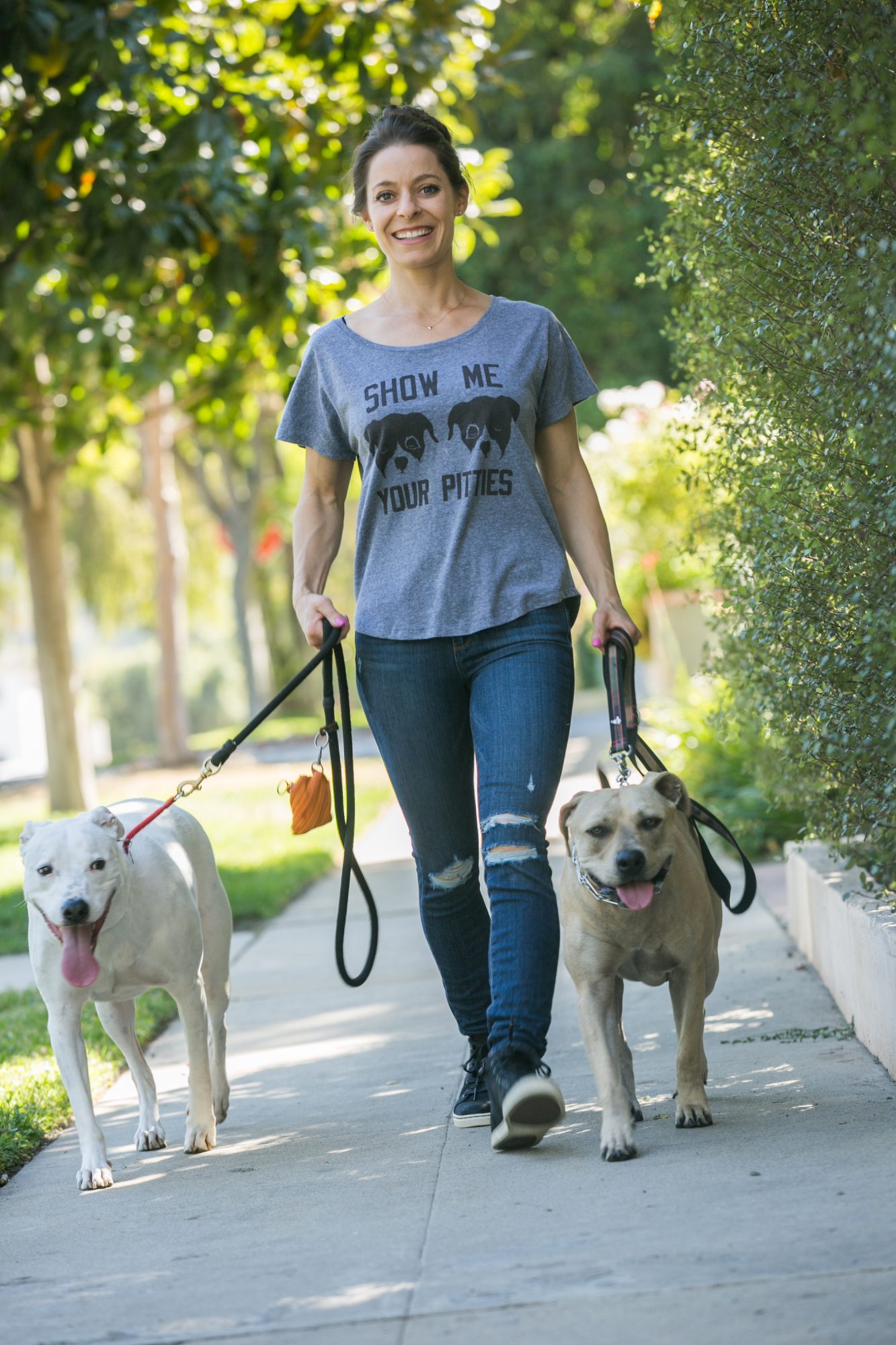 I create health/fitness/wellness videos on my YouTube channel, which always include a healthy dose of humor and cameos of my two rescue dogs. I volunteer with Operation Blankets of Love (they donate comfort items to shelters and rescue organizations throughout the LA area) because my mission is to improve the lives of people and animals. Wagging tails and doggy kisses raise your endorphins more than any cocktail or Girl Scout cookie ever could. I donate 5% of my business each month to a different animal charity because I want to give back as well as increase awareness around animal welfare.