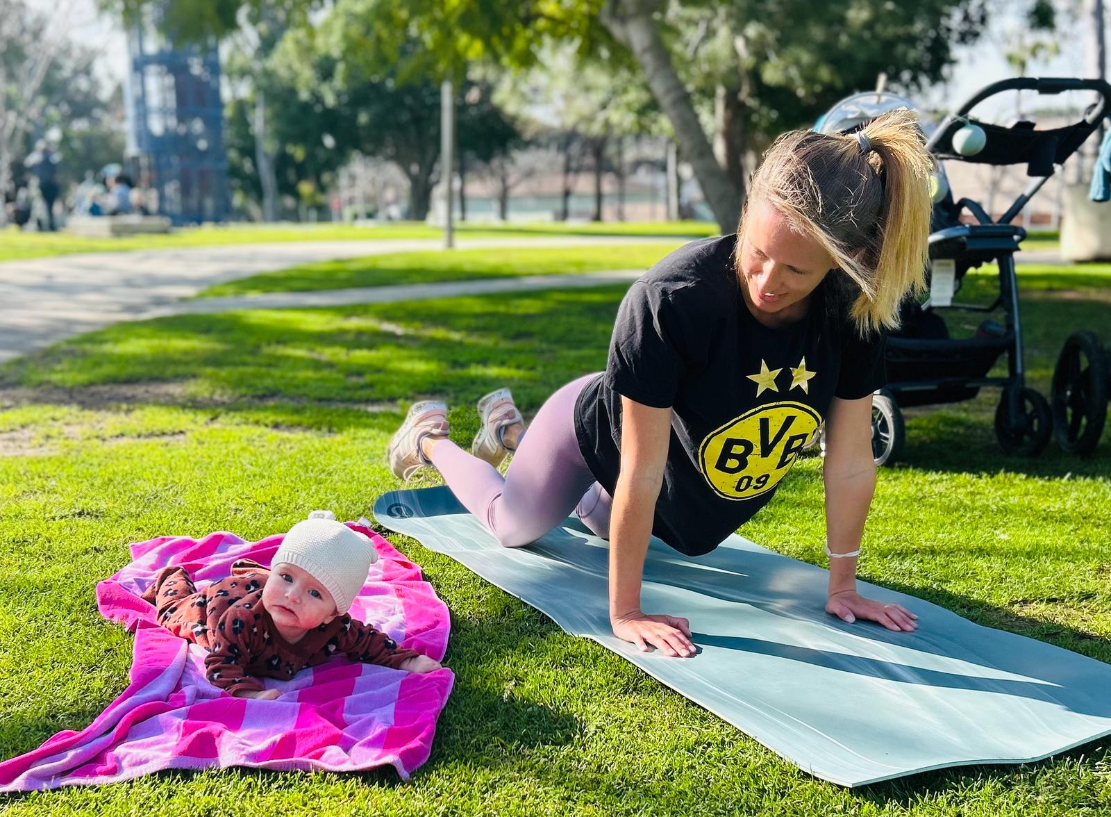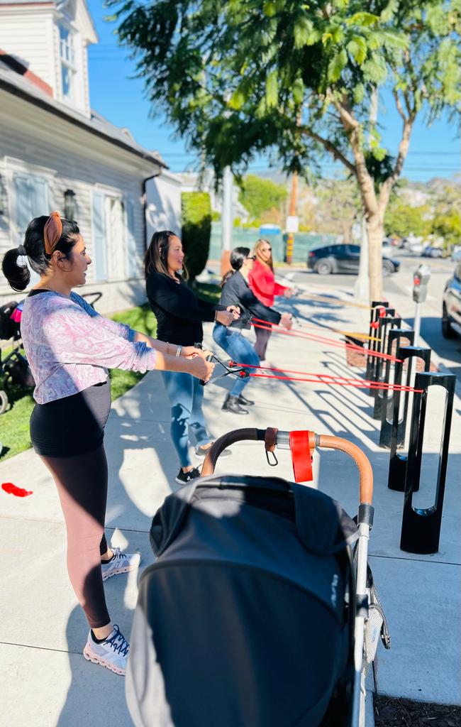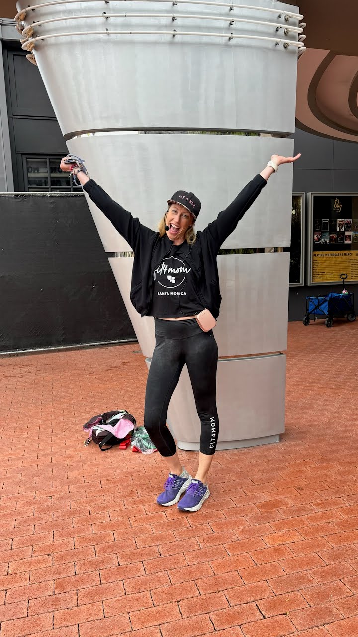 I became a personal trainer directly out of college in 2002, while I was trying to figure out what I “really” wanted to do – and pretty quickly realized that I loved it. I had studied biology in undergrad and was thinking I wanted to go into marine sciences and research, but discovered after a few internships that what I really loved was working with people! I was lucky enough to start my career in fitness off with some great mentors, and completing a master’s degree in Exercise Science at George Washington University solidified my love for the field. It’s definitely been a hustle – I added to my list of credentials with a 200 hour yoga teacher certification, became a spin instructor, and became a certified health coach in my 20s – and my days started before the sun came up and often ended late. Even though the hours were a grind, I always loved that I made my own schedule. I eventually left the gym setting and started my own business training and coaching clients in DC, often outdoors in the parks, and teaching LOTS of yoga! By 2014 it was time for a change, and when my husband was offered a work opportunity in LA we jumped on it. We settled in Santa Monica and had our first child in 2015, and our second in 2017, and our third in 2022! I took a year off training and teaching after the birth of #3, and right when I was beginning to think about getting back to it, I saw a post that FIT4MOM Santa Monica was for sale. It felt like perfect timing – I had started my career in a women’s only fitness center, I had loved teaching outdoor classes in DC, and now that I was a mom I knew how invaluable connecting with other moms could be. I purchased the business in March of 2023 and have been having a ton of fun building it up since then.