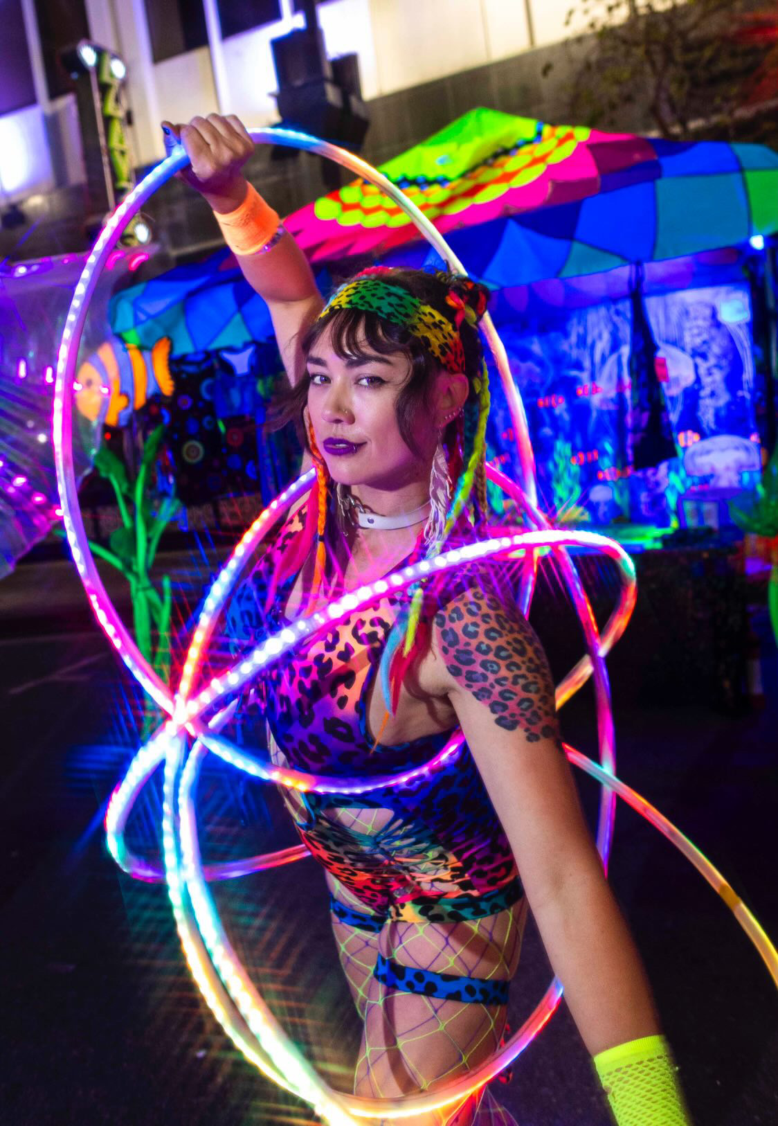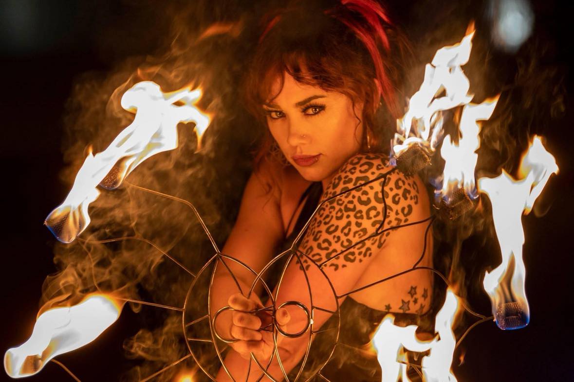 Hello! My name is Madison Orange. I went to Burning Man in 2007 when I was 16 turing 17 at the Burn and it “hit me” there that I wanted to pursue a career in DJing and Fire/LED entertainment. I now run a DJ collective called BossAngeles DJs and an entertainment group called the GoGo Hoop Dance Stars