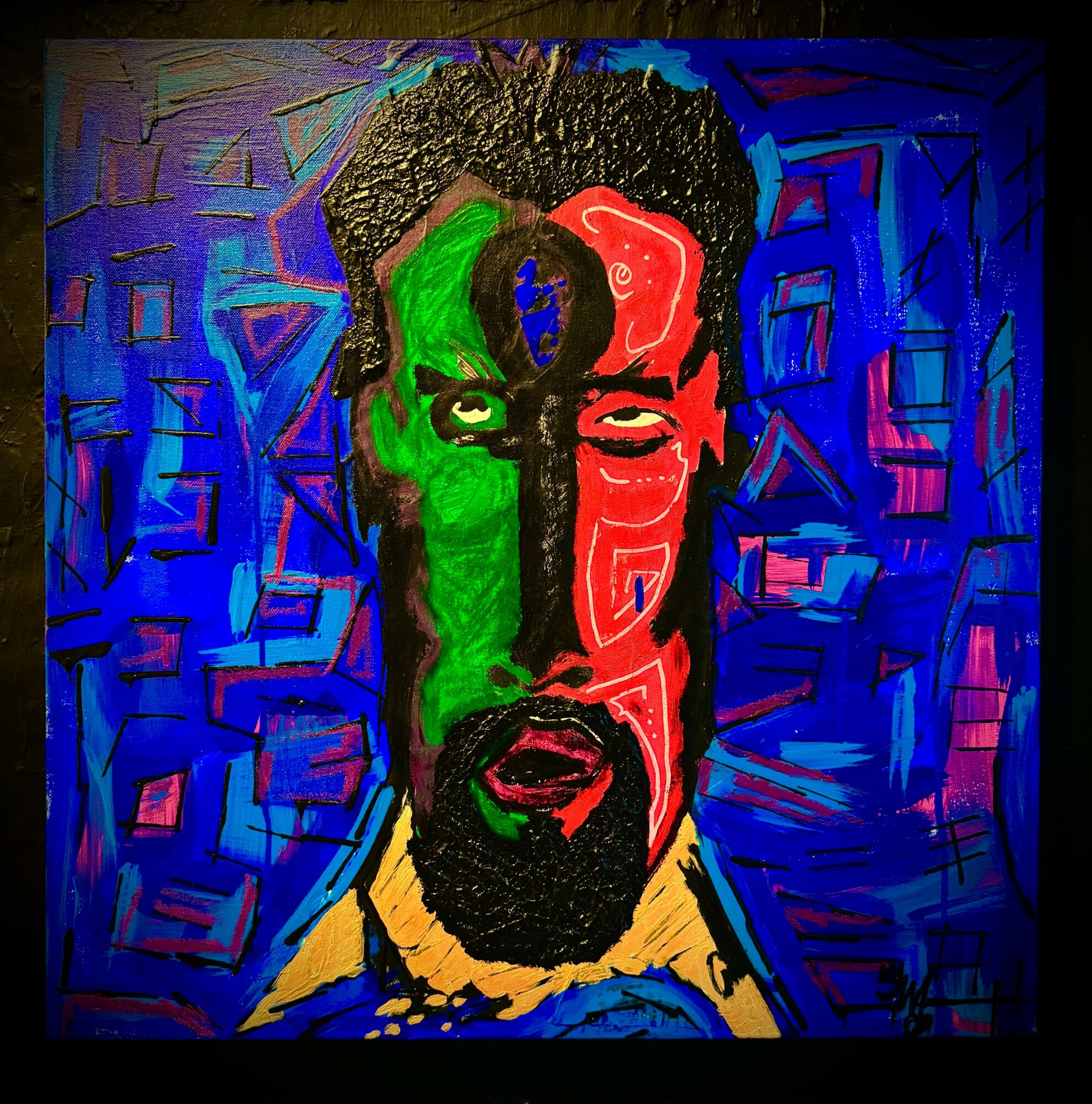 My favorite color is indigo blue. For many moons its showed up in various ways in my art. Recently I’ve discovered my ancestral lineage leads all the way down south to my people referred to as the,”Gullah” people. We are original to this land. And are responsible for the MASSive presence of indigo blue all over the world through our master knowledge of cultivation. My ancestors been speaking to me in many ways especially indigo blue coming through in my art. Viva the Gullah!!!