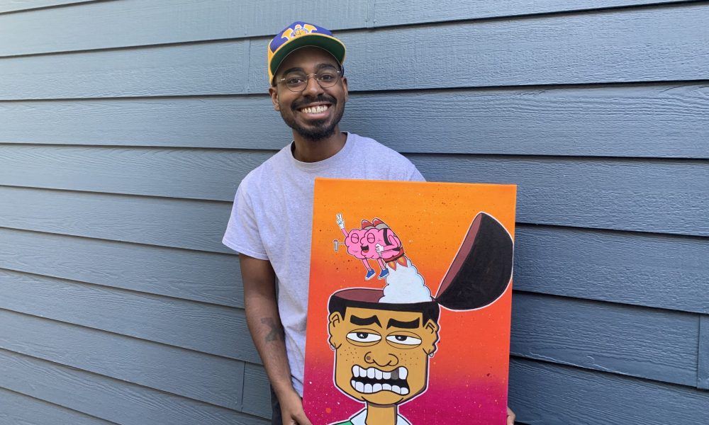 Because of this motivation, over the years, I would experiment with canvases using different colored backgrounds and using larger canvases. I learned to airbrush my background from my dad, use different cartoons and branching out to drawing animals and scenery. Once I graduated, I invested into an iPad which helped me elevate into digital art, which later led to the creation of my stickers. With the help of some friends at District Productions, we were able to start doing some art shows throughout San Francisco, where I was able to sell work and showcase my art for the world to see.
