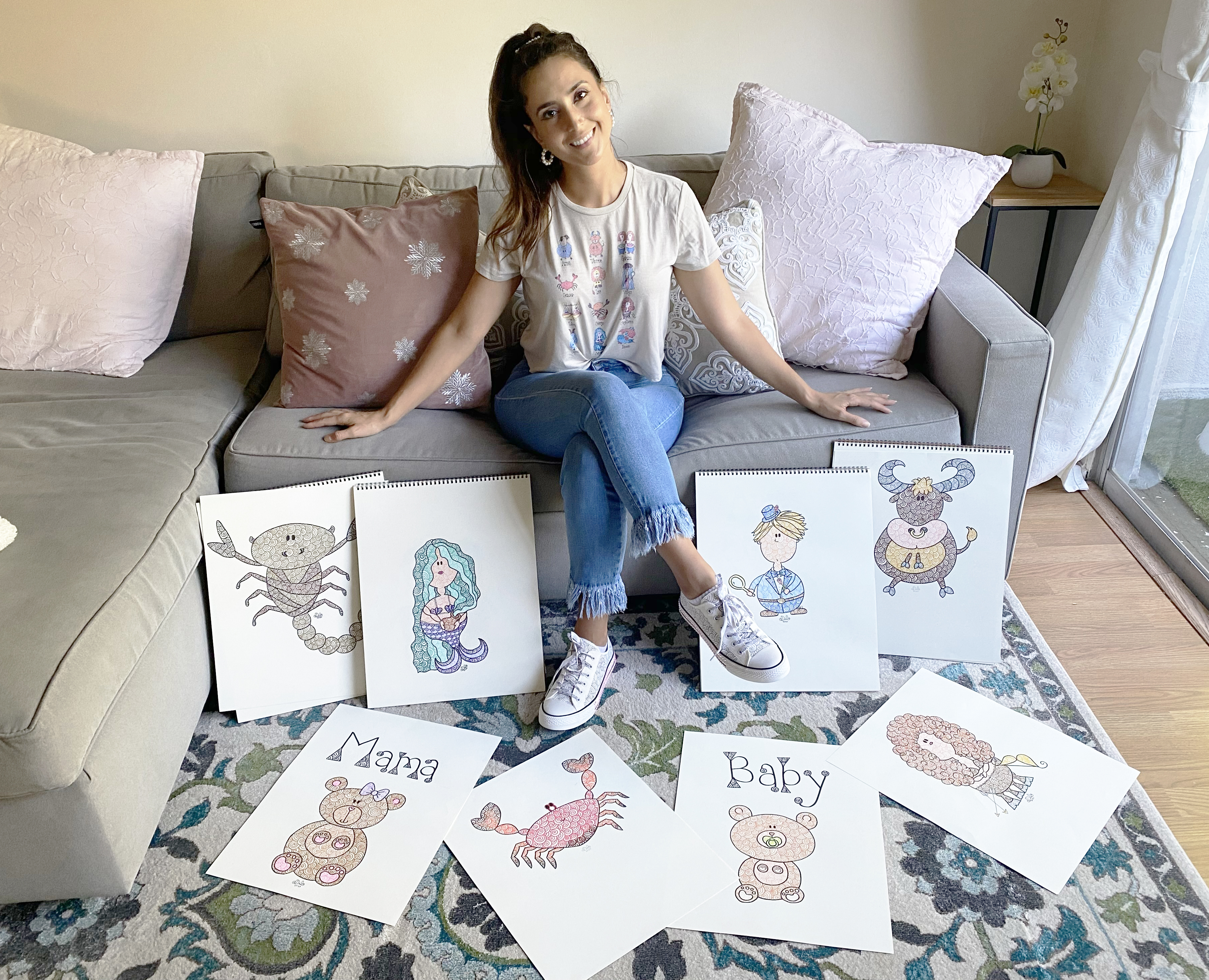 Now…while acting is going amazing, during this time, many of us (especially those of us who work in the entertainment industry) have been forced to reinvent ourselves and think outside the box to continue not only releasing our creativity but also generating income. And so, I am proud to also share the exciting launch of my own apparel company “Spirally Apparel”, a family apparel line selling all sorts of products featuring the original Spirally Characters. These characters are designed and drawn completely out of my imagination, using a pattern I created when I was just ten years old. It was funny how when I faced the moments of highest stress and anxiety regarding the current world situation, my mind went back to its root: My childhood and to an activity, I did back then, when life was easier and things were simpler. I hope the world can have a much-needed smile and a laugh when they look at my creations…