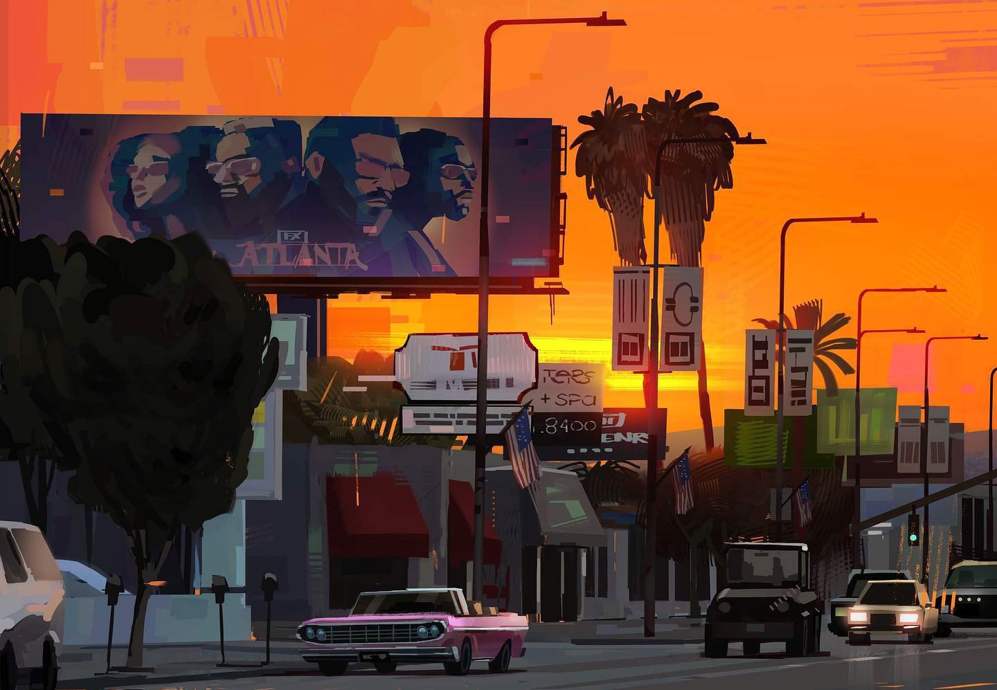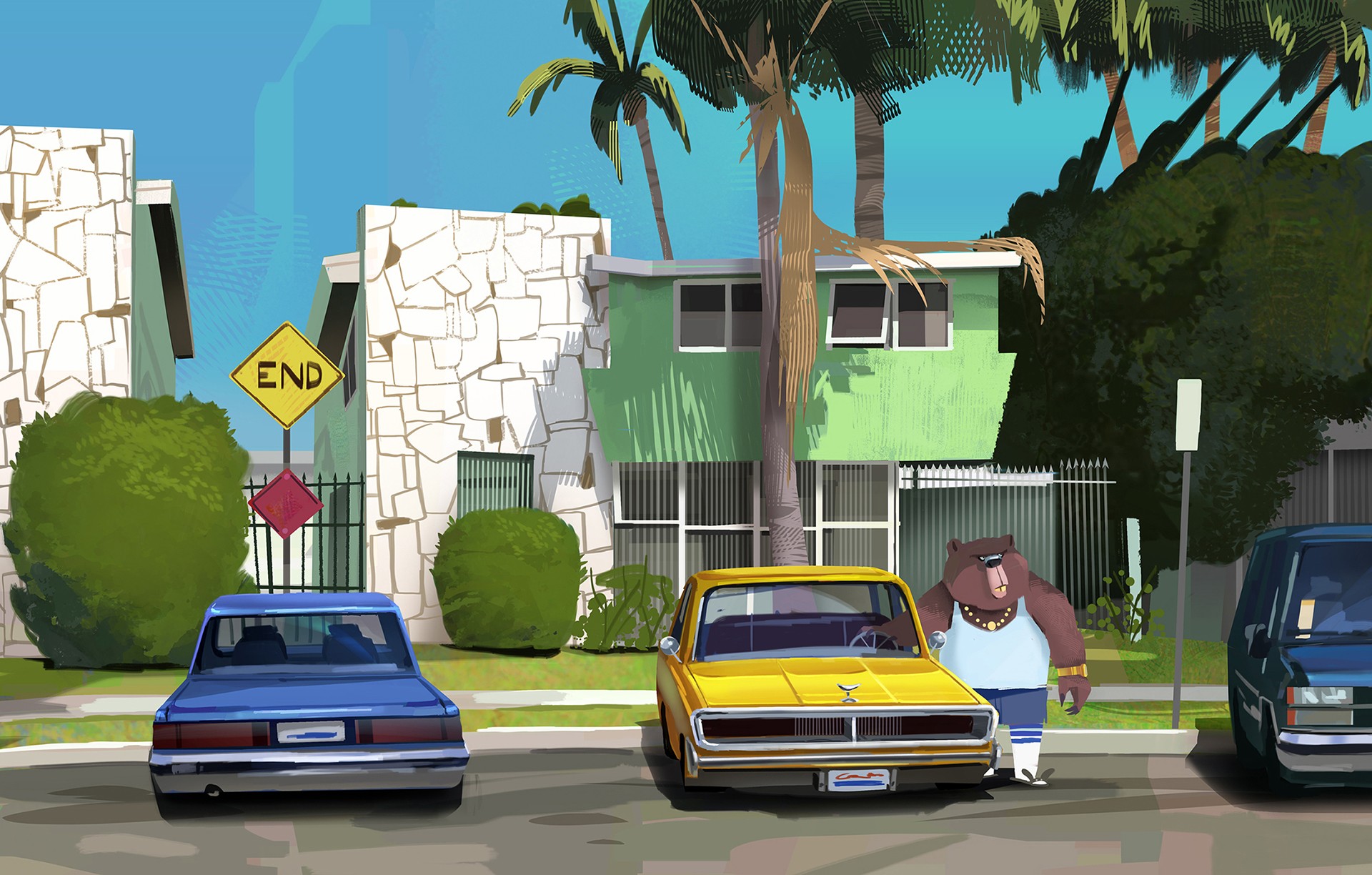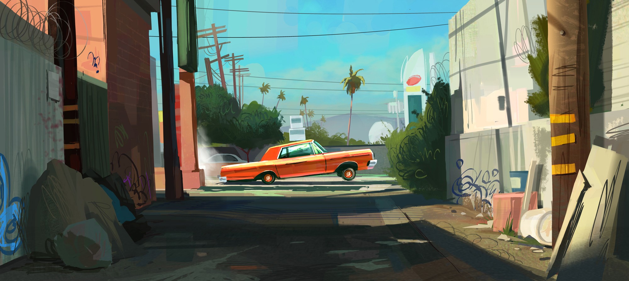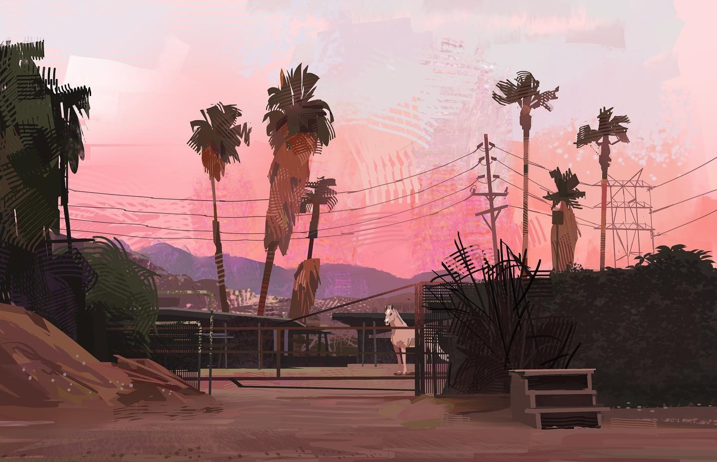 Aside from industry work, on social media, I am known for painting various street scenes around LA. I mainly do this as a pastime/brand development project for myself for long-term growth outside of Animation. LA offers a rich variety of urban landscapes mixed with old and new which often interests me in capturing in my own style. I also enjoy the variety of foliage within urban landscapes found throughout Los Angeles. The landscape itself inspires me to create.