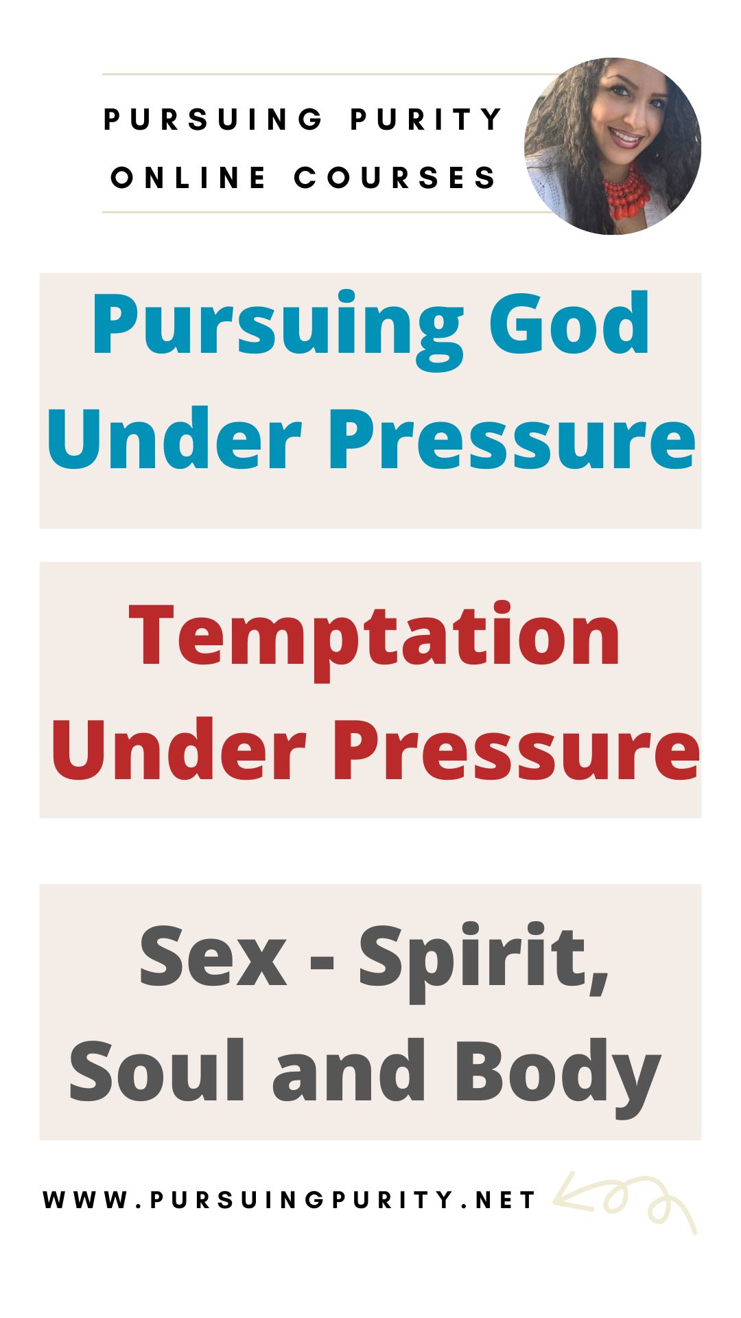 The first book I wrote is called Pursuing Purity Under Pressure. I recognize the over sexualized culture that were living in right now, so I wanted to swing the pendulum the other way. I also created online courses that go along with the book.