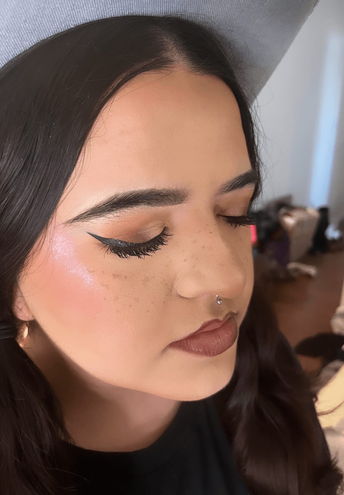 I see myself hopefully having the same passion for my work that I do now, and being even more booked and busy with both my works of being a HMUA and modeling. What pushes me even more to want to get to that point is I think over and over again to one of my many idols Julia Fox saying in an interview that she got where she is today by being delusional, “be delusional, anyone that’s anybody was delusional.” Ever since hearing that my whole mind set has changed because I used to think it was silly to think that way, but it’s not if I want to see myself still working more with my both passions I have to be delusional. So in the next few years I will be working even more as a HMUA and getting more attention and opportunities with my modeling. It’s literally in my last name BUENROSTRO which translates to Good Face in Spanish, my face is meant to be out there with the best intentions. I’ve been told by many people that I’m meant for bigger and can’t wait to see my growth, and I’m excited to see it too.