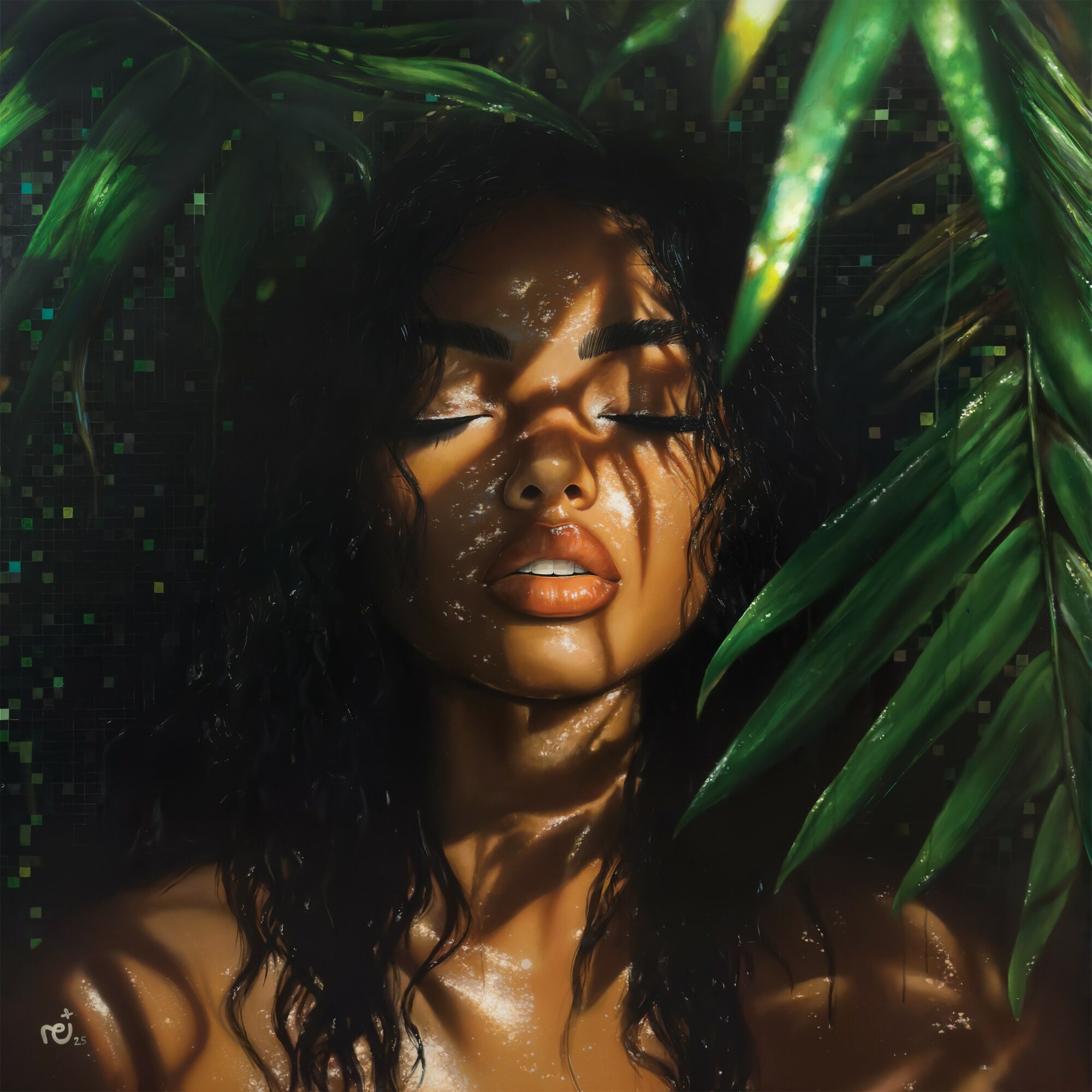 And so I found my way back to painting. It started as a personal release, but it quickly became my voice. My work is rooted in that journey—the struggle of identity, the pressure to be flawless, the longing to connect with something real. I paint women not just as they appear, but as they feel. Strong, sensitive, layered, flawed, powerful. I bring in nature because that’s what we’re missing today—stillness, truth, something untouched by filters and perfection.