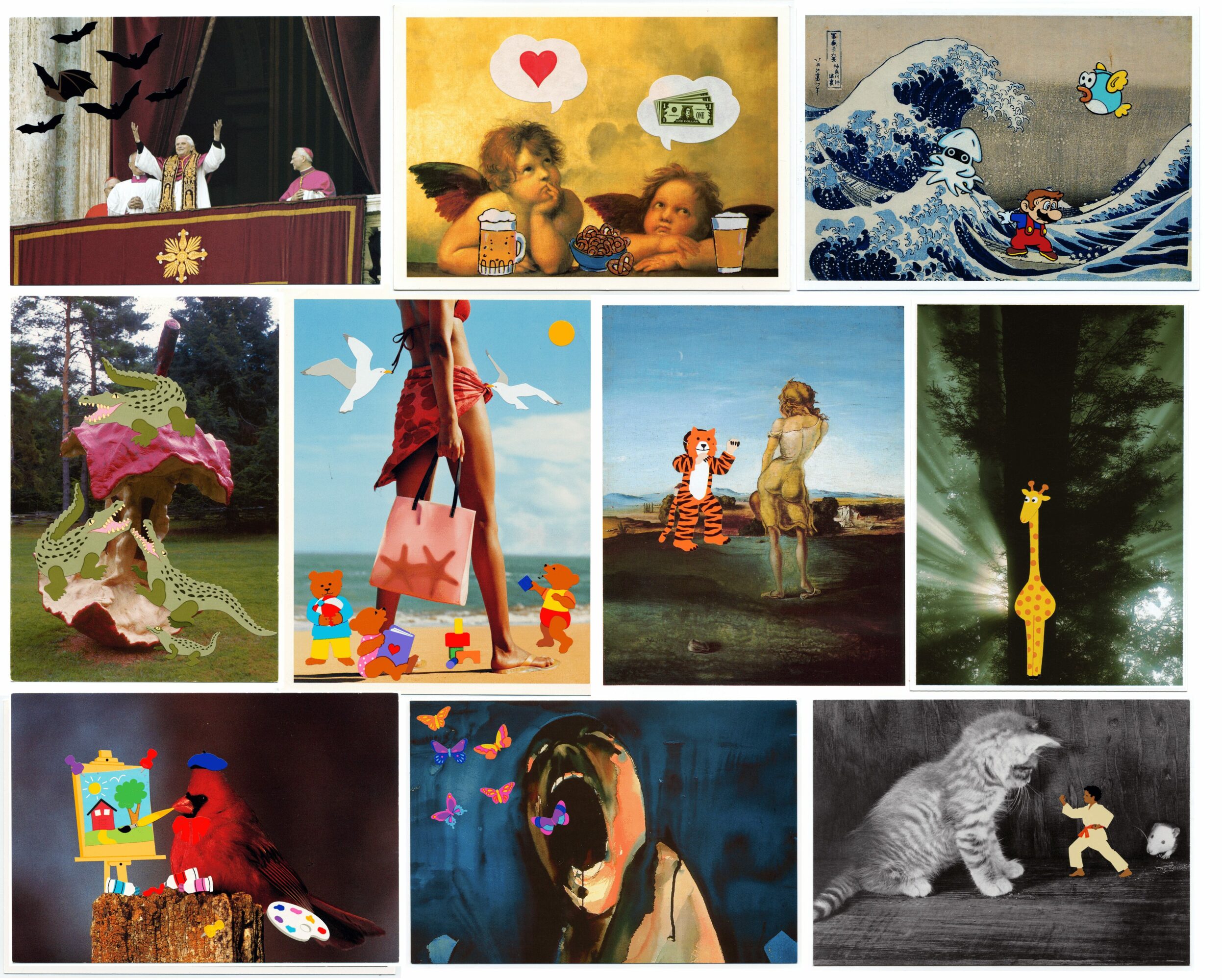 We wanted to use our art and design sensibilities and experience to bring better looking graphic design to the world wide web in around 1998, which at the time was just starting to evolve out of its basic and awkward looking beginnings. We kept this company alive for a couple of good and educational years but running into creative and personality differences, we ended it. I had been getting more into fine art photography while seeking design work for hire, and I started my own independent design company. I also began to create my Postcard Remixes around this time, and found a renewed interest for sending them and care packages to friends.