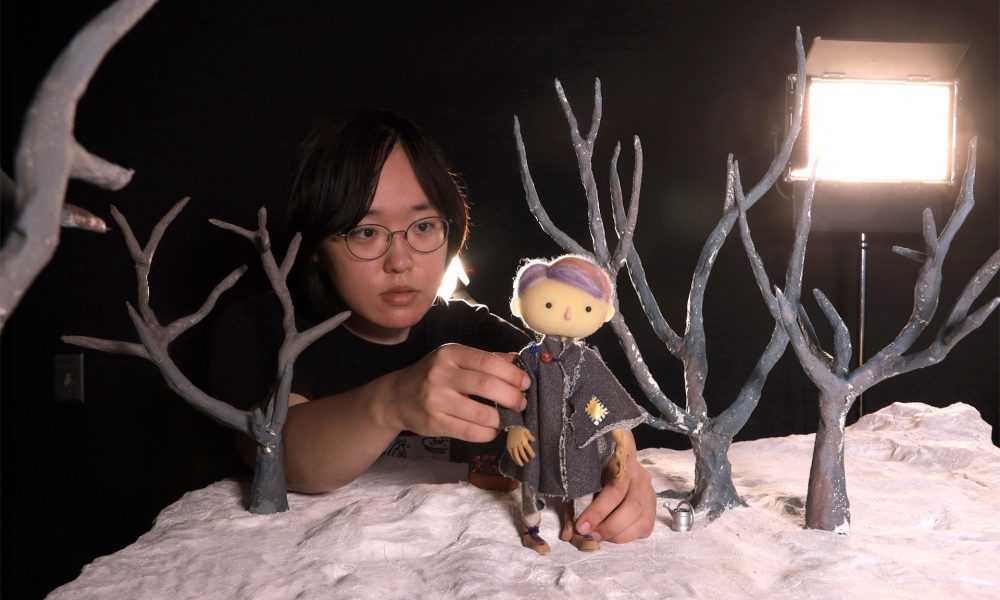 After freshman year, I double-majored in the Illustration and Film/Animation/Video departments to learn various storytelling media, but I found myself more drawn to playing with physical materiality and pursuing unconventional or experimental approaches to these media. I especially enjoyed experimental stop-motion animation projects where I discovered I could make anything in the world to be animated, even landscapes like roads and buildings. It’s very exciting to see inanimate objects given life on screen, and I love the freedom of animation, where objects can behave totally differently from reality. I can create different laws of physics and evoke interesting feelings or perceptions of the world. Animation can be very immersive and experiential to the viewers. So when I was finally introduced to puppet stop-motion animation in my junior year, I felt I had found a perfect medium for myself; it contained everything I loved — storytelling, world-building, craft, materiality, architectural and engineering aspects, and the magic of giving life to objects. Since 2019, I’ve been making stop-motion films and smaller experimental animation projects with materiality at the center of my work.