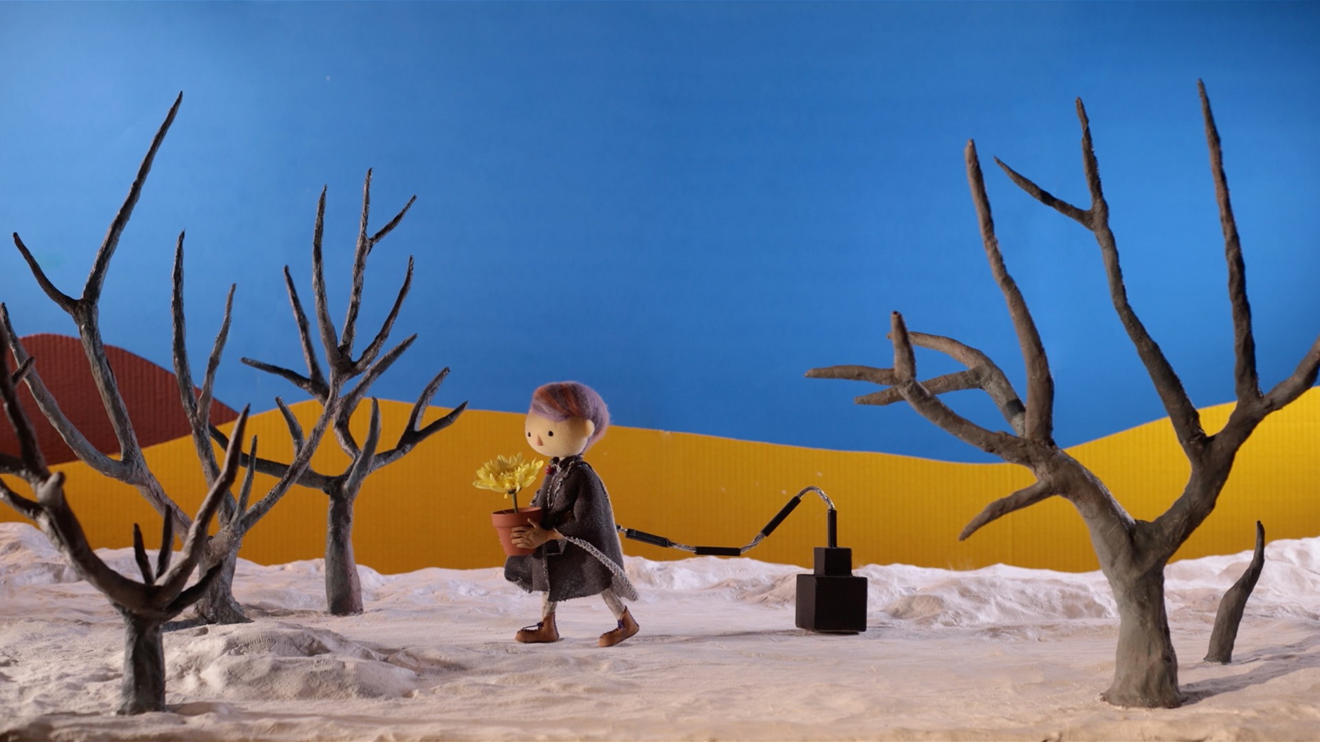 I learned a lot about nature through shooting this film — the sun changes its paths over days, and wet pavement after rain dries much faster than I thought. The puppet’s reaction to the world was reflecting my reaction to the new place I was exploring. It was a labor-intensive process because I couldn’t take a break in the middle of a shot, and I had to shoot in the same intervals to get a constant movement of the environment; I also had to kneel down to animate the puppet standing on the ground. But it was also really fun and rewarding. This film has been screened at multiple international film festivals in over ten countries, such as Animafest Zagreb and Rhode Island International Film Festival, and has received several awards, such as the Best of the Fest and Best Student Director awards at the Los Angeles Animation Festival.