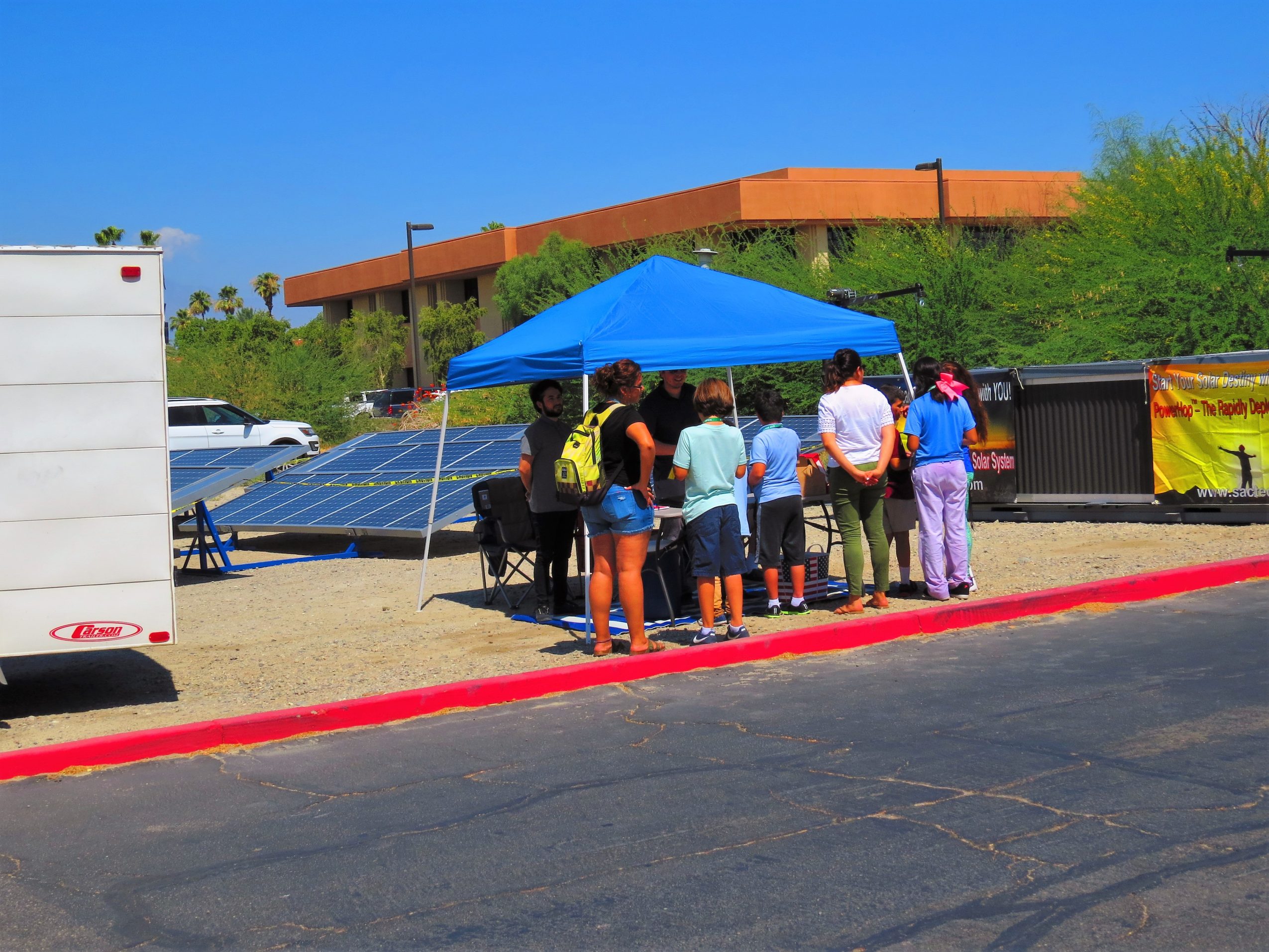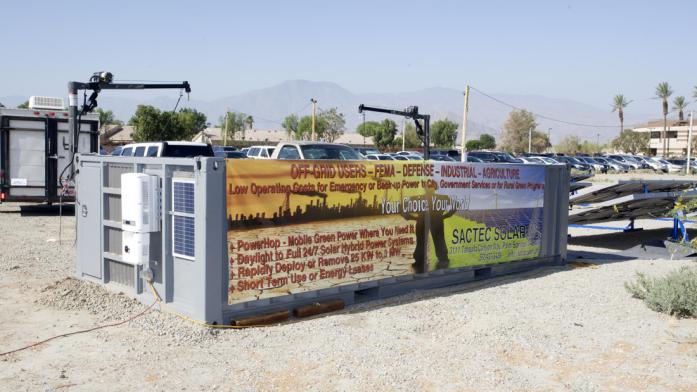 Working with Military groups concerned about the high costs of field fuel and its availability during emergencies, SacTec Solar developed the “PowerHop” concept of mobile solar power systems which minimize diesel generator use. These are rapidly deploying pre-wired solar arrays enclosed in trailers or in half-sized 20ft shipping containers.