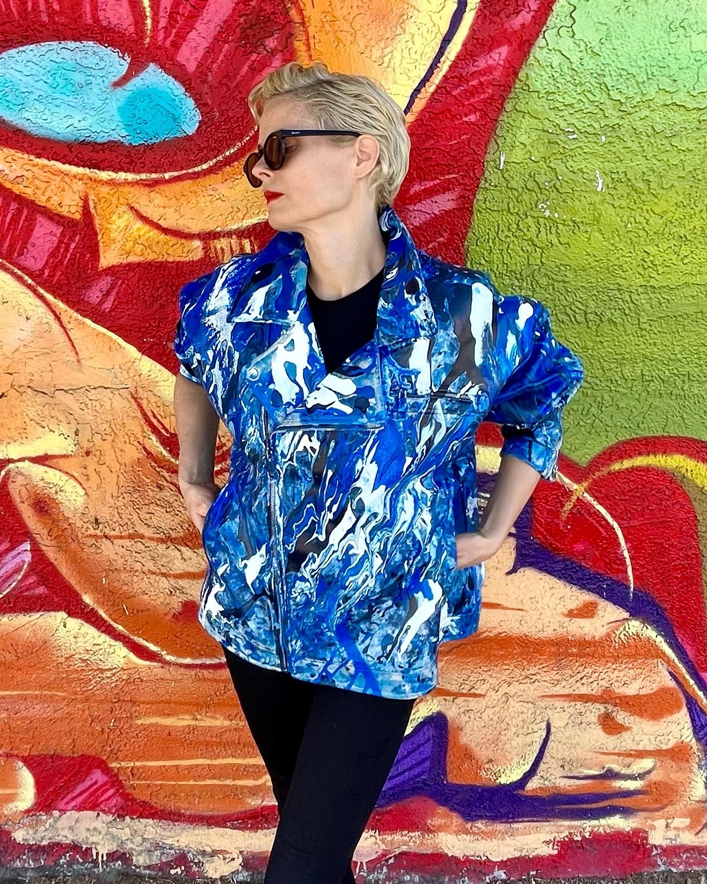 I am an abstract painter as well as a fashion designer. I brought up those 2 skills together to create one of a kind jackets, handpainted. Every design are one of a kind.