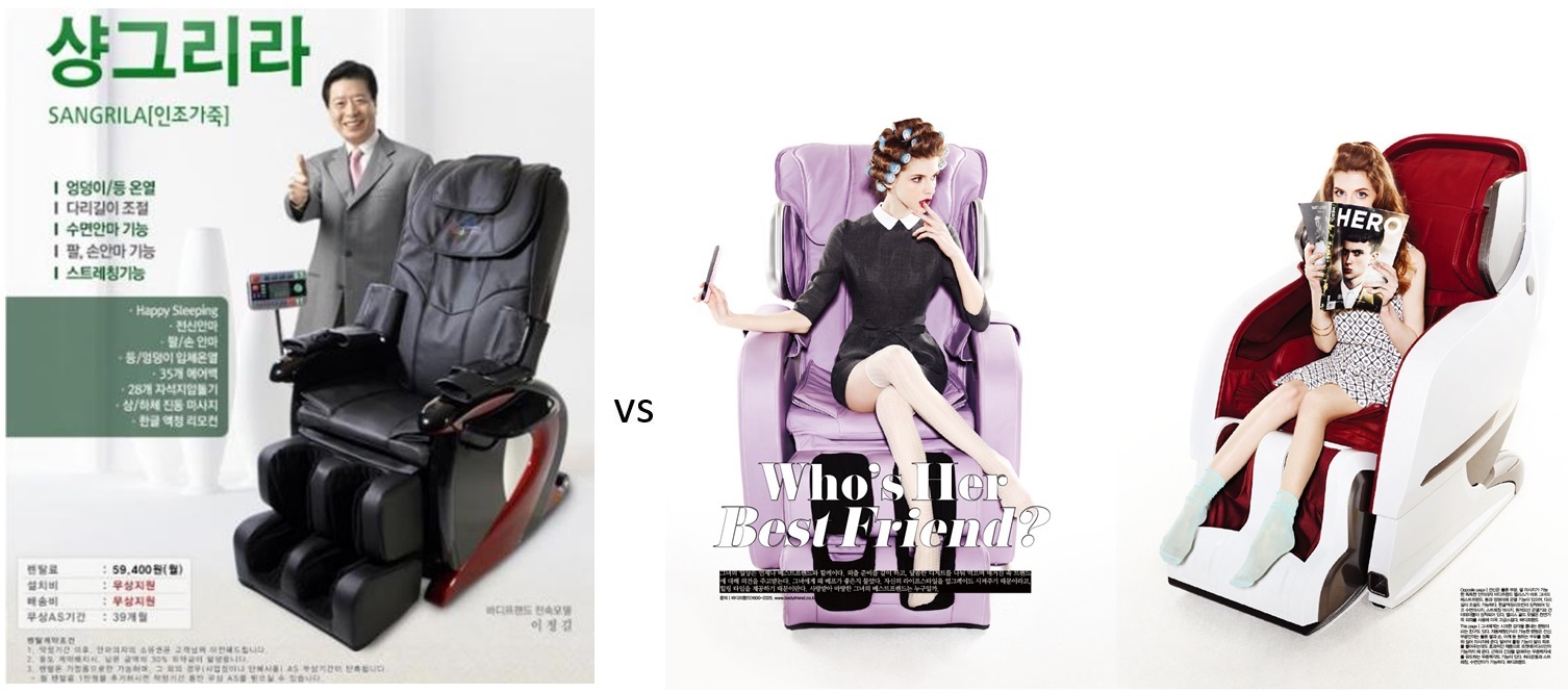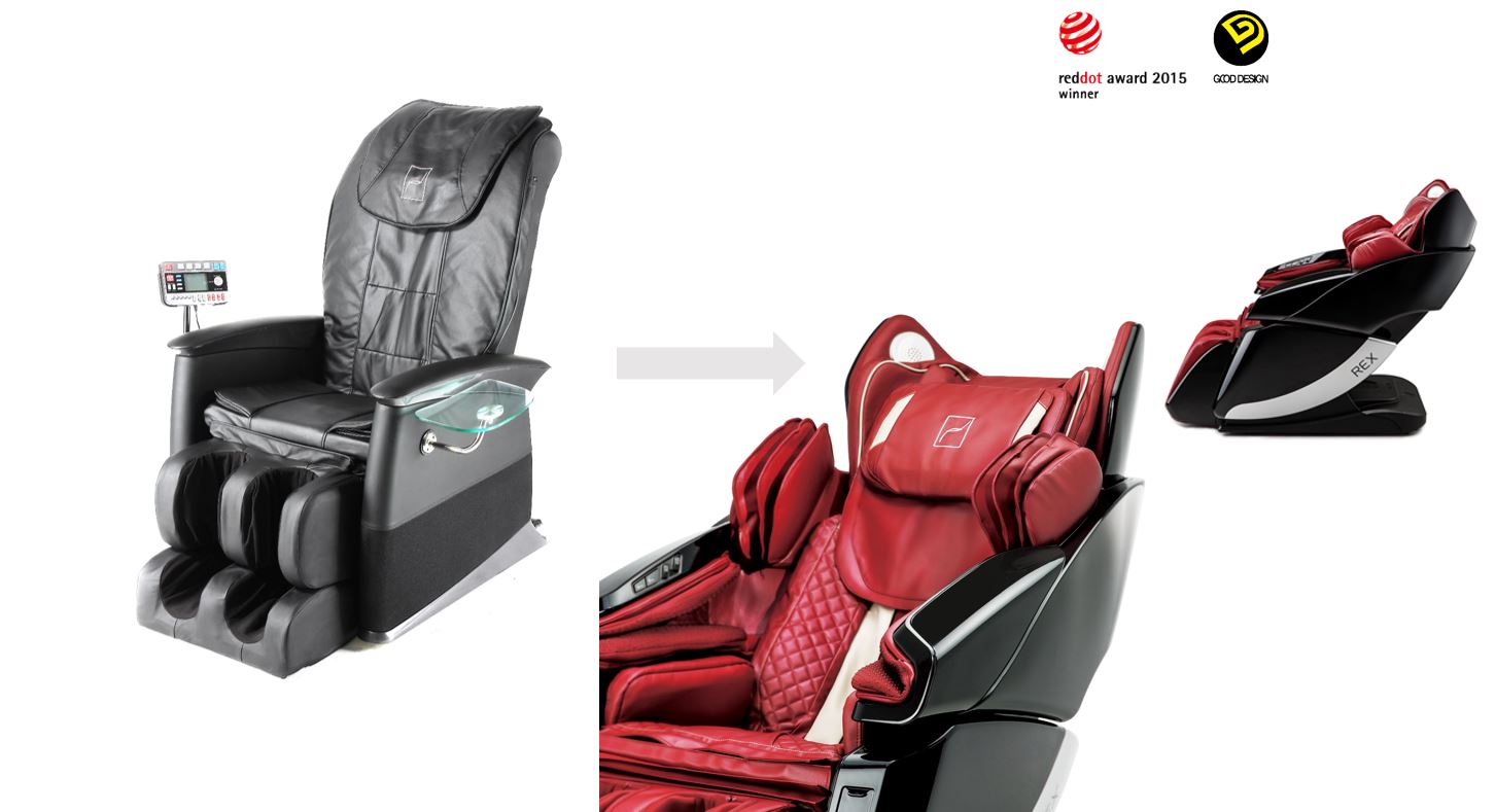 We started advertising in newspapers, fashion magazines, luxury magazines, financial magazines – we wanted to build the hype. This kind of advertising sparked the interest of people who would otherwise think of a massage chair as a bulky old product collecting dust in their living room reminding them of their back pain. Changing the concept and the branding behind the company helped us increase market share and reach out to the younger crowds! The massage chairs of the 21st century are in place not only because of the health benefits but because of the entertainment opportunities they present. Thanks to the well-executed product development, branding, and marketing strategy, our products become a must have for the top 15% of the wealthiest people in the country. We just had to adjust to their luxury necessities. As you can see in the image below, the first massage chairs release by Bodyfriend needed a lot of work.