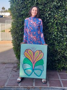 My art is emotionally loaded and color-intense. I do oil and acrylic paintings on canvas, cardboard, and wood panels, and also create hand-painted clothing. My artistic process is dictated by a place, moment, and mood, and always driven by intuition. I am currently working on a couple of new pieces in a style that is different for me. They are really fun. I don’t what to give any spoilers – just follow me on Instagram and you will see them in a couple of weeks. The bottom line is this: everything I create is for others to see and feel.