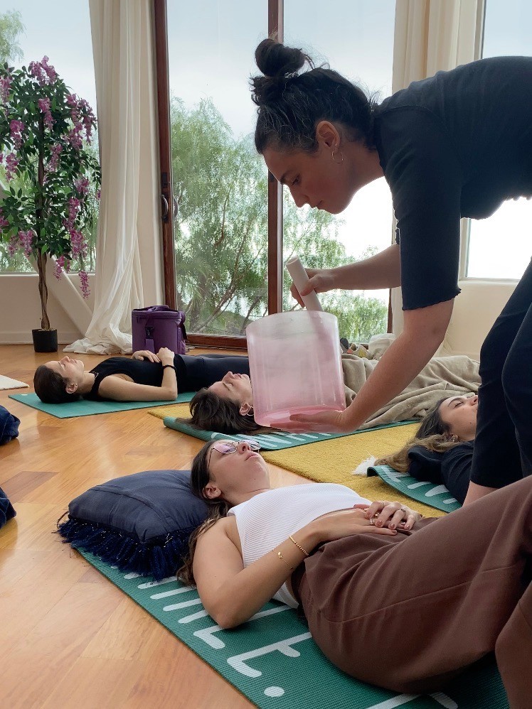 However, at the turn of the year in 2022, I was rushed to the ER and had emergency surgery. I lost all my clients and was out of work for seven months. Again, I was faced with needing to heal myself. I turned to spirituality! Specifically, sound healing and meditation. I bought my first 2 singing bowls for the sole purpose of healing. It sparked something within me – a remembering of sorts, and I went through a massive spiritual awakening. I broke through many limiting beliefs and starting teaching sound healing meditation on my Instagram, and people began to watch, come back, share with their friends. I still was not. Making any money and was really struggling to make ends meet. LA is not an easy place to live if you do not have a stead income. I couldn’t find a job anywhere – I applied for months, looking for full-time or part-time and nothing. Until (and there is always an “until” in life), I got a part-time job a the front desk of a local meditation studio. Soon, I started teaching at a couple of studios on the Westside, and my confidence grew and grew.