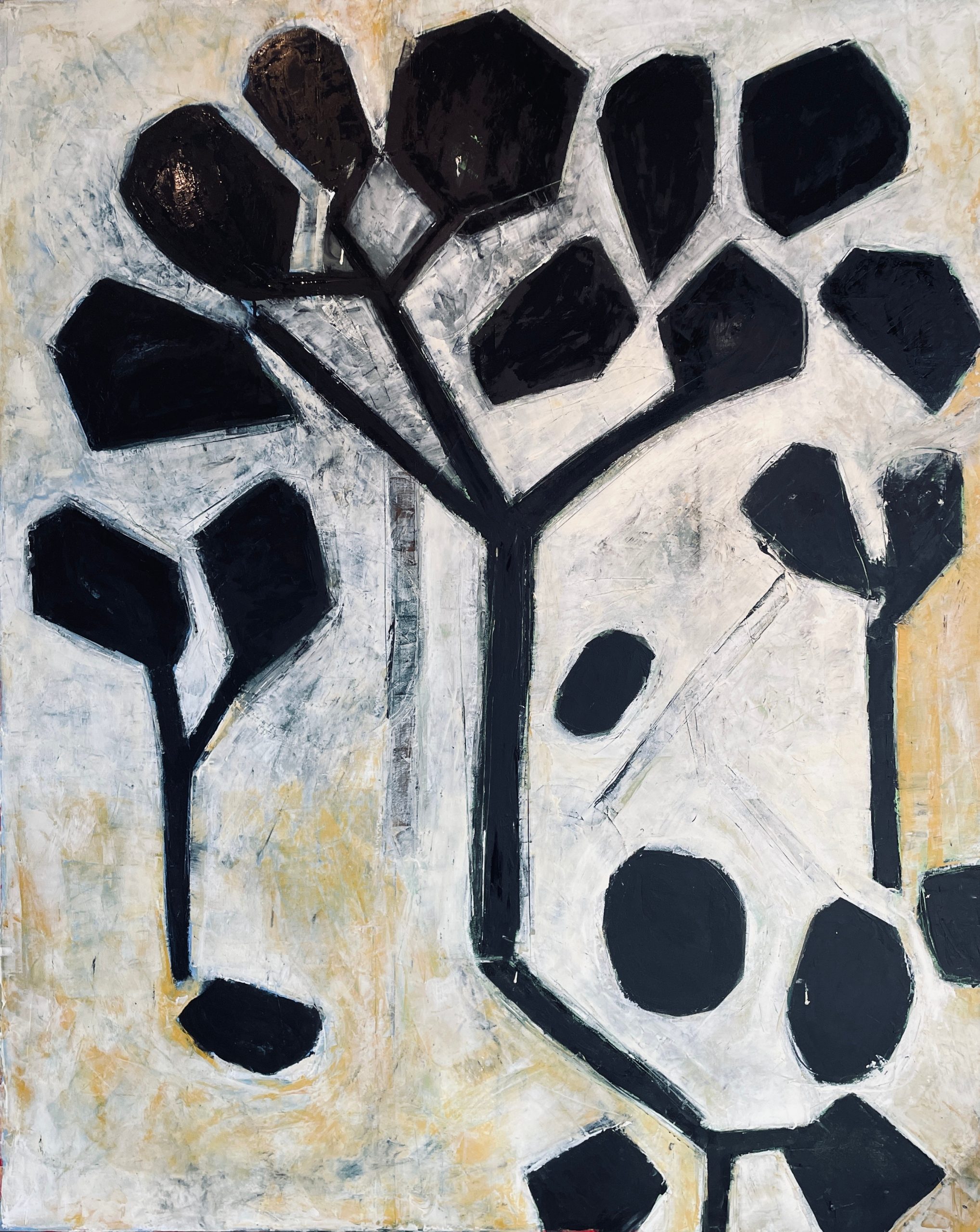 “I have often said my life should be a movie. Whether it’s a tragedy or a comedy is yet to be determined,” says Burns with a laugh. Born and raised in a conservative suburb of Chicago, a young Tom was heavily influenced by his Irish/Italian Catholic upbringing. Given that, his early choices were perhaps understandable: corporate job, marriage, kids, and even a golden retriever, but at every turn, art, and creativity tugged and pulled until he could no longer deny what he knew in his heart he was meant to do. For Tom, painting was a way to amplify his creative voice and find peace for a restless soul. “Painting is emotional for me,” he explains. “There are days when I will sit in front of a blank canvas and do and say nothing. If I am not feeling anything, those are the days I just walk out of the studio. There are other times that I am so full of emotion I have to just get it out of my head or my heart, and I just force myself to start painting. It’s my outlet.” He also knew there was another aspect of his life he needed to confront and accept. “Until my late 40’s, I had no idea I was gay. Remember, I was brought up Irish Catholic, and my future was pretty much mapped out early on. I remember going to my first therapist years after my divorce from my wife and then a brutal breakup from a partner. The therapist was fascinated by my background. I was an anomaly to him. He kept asking, ‘Really, you had no idea you were gay?’ Of course, in hindsight, there were signs, but for years and years, I ignored the undercurrents.” Coming out to his family and friends was scary but also liberating. He needed to redefine his life, and he did that through his art.