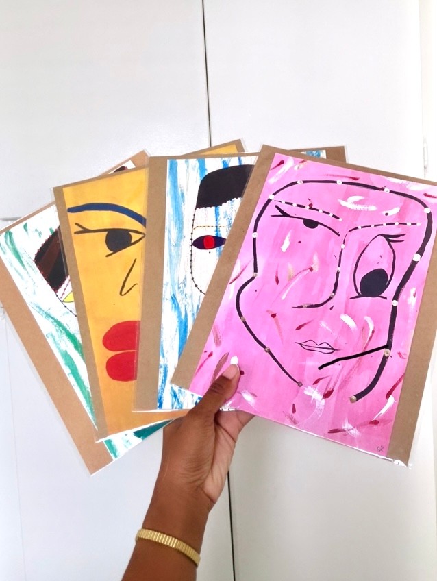 I am originally from Nigeria, born and raised in Lagos and I came to California in 2015 to study Fashion Merchandising at CSULB. I suppose that’s where my story begins, within this context at least, haha. I graduated in the summer of 2019 and briefly worked in the fashion industry, mostly retail and PR. Then covid hit. I’ve always been an artist but I never really shared my works or I guess even really embraced myself as a full artist until 2020. That’s when I published my first poetry book, Half Past in the Am, and also started painting consistently. Presently, I’m getting my Master in Linguistics while also balancing my creative pursuits.